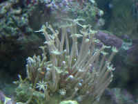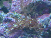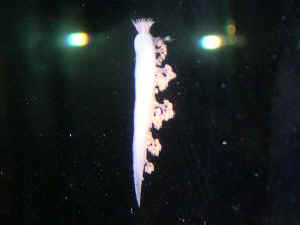 Nudibranch Identification Question Three Nudibranch showed up in my tank via a piece of coral and I wondered if you might know their name/eating habits? They are bright orange all over (no other colors present). They are covered with tentacle-like polyps from tip to tip. None are longer than 3 inches. There is not really anything else particularly distinguishing about them, other than the above features. <I am going to guess Nudibranchia eatyourcorali :) Sorry, but I really have no idea. Do please see here http://www.wetwebmedia.com/nudibran.htm http://www.wetwebmedia.com/nudispt2.htm http://www.wetwebmedia.com/nudispt3.htm http://www.seaslugforum.net/ and follow on through the other linked files for additional pictures. My best guess is that these are possibly predatory for that particular coral. Nudibranchs in general of very specific in what they eat. It stands to reason they hitchhiked into your tank on the back of their food source.> Thanks in advance, George <You are welcome. -Steven Pro> Re: Nudibranch Identification Question Steven, Thanks for your quick reply and information sources. Through your help (the links) I identified the little buggers! They are Family Tergipedidae, Phestilla melanobrachia. <They did not happen to hitchhike in with a Sun Coral/Orange Cup Coral/Tubastrea?> Thanks, I would not have identified them without your help. George <You are welcome. -Steven Pro> Re: Nudibranch Identification Question They did hitchhike in with the Orange Sun Coral. I am starting up a new 7 gallon saltwater set-up and the fish store gave me some "bits" from their tanks to help me get started. One of the larger bits was an Orange Sun Coral that was ~75% dead, only two polyps were left. I was happy to have the free coral, so I did not complain. What surprised me is that when last night the two "polyps" got up and cruised around the live rock. <They were probably looking for more Tubastrea.> After a closer inspection, it looks like I have 3 Nudibranchs (1 large, 2 small) and good sized bunch of eggs on the coral that they came in on. I would really like to keep these guys alive, but I have to do the cost benefit analysis of buying Sun coral to keep them feed. this could get expensive. <Yes, but it would be interesting though. I know Tropicorium was propagating Tubastrea and if my memory is correct, a gentleman by the name of Yaiullo had them spawn in captivity. I know he wrote an article about it. I would search for Tubastrea and Yaiullo and determine if you can/desire to set up a second tank for raising food. -Steven Pro> Re: Nudibranch Identification Question Thanks. That's a great idea. People are going to think that I am nuts, raising coral to feed Nudibranch! <Tell them you are on the cutting edge. -Steven Pro> Re: Nudibranch Identification Question I searched for Yaiullo, and he did publish an article on spawning Tubastrea in a 1994 edition of Aquarium Frontiers. The AF archive does not go back that far. <I think AF was still an actual paper magazine at that point. I looked around for an online version myself but no luck.> I tried to find an e-mail address for Joe Yaiullo, to no avail. Do you by chance know his e-mail, where he might be working, or organizations he might be associated with? <I know he is working in New York at a Public Aquarium. Perhaps someone that reads the dailies on www.WetWebMedia.com will read this and find/know of a link to his article. -Steven Pro> Weird little critter.... Hey guys. I am just starting a low light 55 gallon reef (well, 3 months so far). The tank was Fish-Only before for perhaps 6 months. 15" in-tank counter current protein skimmer, 90 watts of N.O. lights, Coral-life and Ocean-life bulbs. Got maybe 20 lbs of cured Fiji rock so far, and some coral skeletons. Crushed coral substrate. Livestock; a few Sabella feather dusters, 6 Astrea, Mushroom, Button and Colt corals. Anyway, I bought a piece of rock with what I thought was some kind of anemone, bluish-black with a white stripe in the center. I placed the organism right under the light, and to my surprise, by the next morning it had crawled away. Haven't seen it for like 2 weeks until today when I was moving rocks around. Got a real good look at it too. It has a very dark blue center perhaps an inch long and a frilly translucent mantle, it would be a great display critter if it came out in daylight. The white stripe is some kind of bone or shell, which the mantle has enclosed from underneath. Two short feelers/tentacles/pseudopods extend from the front. It looks similar to a type of snail called an Opistobranch (please excuse the spelling) or something like that. <indeed... does sound like a shell less nail/Nudibranch> Is it going to be any danger to my other sessile inverts? <tough to say... more likely it will starve to death as most are so specific if their diet. There is some home that yours eats flatworms which are possible to culture in display aquariums. Do browse through some specific references on Nudis to get a species ID with hope that it is recognized in the hobby for its needs. There are many dedicated websites if you care to de a keyword search.> Well thanks for your time. Simon : ) <best regards, Anthony> Nudibranch I want to get some Nudibranchs or other sea slugs. <Please see here, http://www.WetWebMedia.com/nudibran.htm, regarding their extremely poor track record in captivity. There are a few that are suitable, but the vast majority starve to death.> My Tank is 200+ Gallons and is fish/invertebrate (No Coral). Invertebrates: I have various hermit and other crabs (Anemone, Porcelain, Red/Blue leg hermits, etc.), Flame Scallops, Cucumbers, Condy Anemones, Starfish, snails (Cowries, Tulip and Flamingo Tongues) and several species of Urchins. Fish are a mixed bag of Damsels, Gobies, Wrasses, a Lion, etc. My question is, can I introduce sea slugs/Nudibranchs into this environment and if, so, what types would you recommend and what are possible conflicts I might encounter. I re