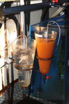 Feeding of fish Hey Bob, I've been reading your FAQ's and I think I'm not as up to snuff on this stuff as I once believed myself to be. I've emailed you in the past several times for various issues but this is something new. First, I emailed you a while ago about a colt coral that had been doing well but had developed a white area along the base of it's stalk. I am happy to say that this is now gone, and the coral seems to have grown again (more than double the size at purchase). This is in my opinion an very healthy animal. <Yes> Now for the not so good. I have some hairy mushrooms that are not doing so good. I followed the advice of my LFS and did not specifically feed these animals. I have had them for a while, and they are dwindling down to little buttons. <Do feed them...> My h2o quality is good (I'm gonna have a different LFS check it for accuracy) and my lighting is adequate so I think that they must be starving. What should I do (feed obviously) to rectify and save these beautiful animals? <Just the feedings.... perhaps with a vitamin liquid mixed in ahead of time> Also, I have had a fish death. I recently purchased a percula clown (appx 1 1/2" size) from a LFS. It never seemed comfortable and died within a week of introduction. Was this specimen too small? <No... captive bred clowns are almost always shipped about three quarters to an inch in length... and do fine> At the LFS it acted normally and ate before purchase. This fish was in a system with about 10 other similar sized Perculas. Is it possible that this fish died from "loneliness"? <Possibly a contributing factor> I currently don't have an anemone. Would it be better to introduce one prior to the introduction of a new percula (my wife's favorite fish). I have read the FAQ's on anemones and their symbiotic clownfish inhabitants. Would you mind making a suggestion regarding the species of anemone that is most suitable for a percula clownfish? Also, should I be concerned with compatibility between my b/w striped damselfish and the clown? I have seen some damsels take up residence in anemones. <All this is posted on the WWM site> Lastly, I have a Kole Tang that is struggling. I think that I have not been feeding him/her properly. I have an abundance of diatom (reverse osmosis coming in the future) algae, and a bit of filamentous algae on my LR. I have been supplementing with brine shrimp occasionally, and about once weekly with Nori. Unfortunately, I just noticed that this fish appears to be losing weight. It may be too late because the animal appeared distressed this morning as I was heading out the door. I feel terrible because all of the things I mentioned should have been prevented. Regarding the Nori, I haven't seen the Kole actually eat any of it. I have one damsel who devours it, a lawnmower blenny who loves it, and my Mithrax crabs (2) are usually the first ones to it. Possibly placing it higher on the tank wall will help the Tang (or his replacement) get a little more. I currently use a small piece of LR to hold it in place on the DSB. <Yes to placing the Nori strips up high, near the water surface... with a plastic clip> I have been considering making my own food to boost the health of my animals. I have seen some recipes around but was considering blending fresh shrimp, 1 or 2 oysters, fresh fish (is salmon/trout ok, I have lots?) <Yes, very good> , some Nori, and anything else you may suggest. I thought that just blending and freezing this would be better than the commercial stuff out there. I also thought about adding some Zoe drops to the mix. Any help would be appreciated here. I thought I was doing this (reefing) intelligently but I appear to have missed the bus in some important areas. <Lifetimes of material to be known...> Luckily I have put off buying an abundance of livestock until I had things stabilized. Oh, I forgot to mention, I have 1 horseshoe crab, 1 sand sifting starfish (very cool), 1 skunk cleaner, and 1 coral banded shrimp and they are nice and plump. Would it be OK to add another Skunk cleaner, or will there be territory issues? <In how big a system? Should be okay if more than a hundred gallons> Also, I was thinking of eventually purchasing an anemone shrimp to go with the anemone. Will this animal coexist with a percula clown or will there be issues over territory? <Too general a question... better w/o in most cases> Sorry for the length of this email, I just have a heavy responsibility and I feel that I've failed my dependents. Jason <Study, reflect and be satisfied with your efforts and progress my friend. Bob Fenner> Just a couple of short questions Hi Bob, I have emailed you a couple of times about (ich, fourline wrasse, stocking) and I look up to you as my saltwater information source. I seemed to have overreacted about that ich problem with my blenny if you can remember with all these questions) I believe now that he just likes scratching on rocks and he never has visible symptoms of parasites. <Ah, good> Anyways, I still have the red lip blenny but I traded the Foxface (needed a bigger tank) for a Centropyge argi. That little angel is doing great, and he is easily my favorite or one of my favorite fish. The blenny and angel are having some aggressive battling. A few days after I first introduced the angelfish my blenny bit him a few times (the blenny bites a number of fish, a cute but territorial little guy). Now my angel, not being a pushover like my Foxface, sees the blenny as a threat. The angel probably about 50% of the day tail wags and slaps the blenny and shows aggressive posture towards him. The blenny gets mad about this territorial posturing and bites the angel more. The fights go on and on........ Is there anyway to stop this fighting? I'm thinking about taking the blenny back as he started the fight and picks on other fishes. <Time will see these two make an uneasy truce for most of the time> Second question, a simple one. Is my food adequate for these two fish? I feed the