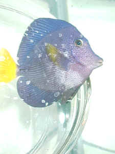 - I'm Seeing Spots - Hello, big fan of the site :) I have a question pertaining to a Tang that I previously ordered from www.themarinecenter.com. I had it shipped overnight from California (I believe), to Wisconsin. <Have suspected for a while that these folks, while in Texas, do actually ship out of LA at times. Have gotten packages from both places.> The fish arrived the next day around 3:00 p.m. The water was quite cool, and the fish was on it's side. I put the bag in my tank to warm it up to proper temps, and ran an air tube in for oxygen. After sometime, I started slowly putting some of the main tanks water into the bag. After quite sometime, the tang (Chevron Tang) started to look better. I put him in the main tank after sometime. It has now been 1 day since I received him, and he is eating well off the liverock, but I have noticed from the day I put him in the tank, he has a few small white spots on each side fin, and maybe a few on his body. <This fish should be in a quarantine tank.> They look similar to, but may not be ICK. I know all about quarantine tanks, and have one almost setup. This is the 1st fish I have bought from mail order, and it will be the last. I have only bought local from a place that strictly quarantines before selling. I have always had excellent results from them. The Marine center that I mail ordered the tang from seems to have an excellent rep, and also quarantines before they sell anything. Now I know that a Tang can be more susceptible to ICK, so what is the chance my tang has got this disease? <At least 50/50, if not better.> He isn't scratching on anything. I have had fish along time ago that attained ICK, so I am familiar with the signs. I am just worried about my "perfectly healthy" (water parameters are perfect) existing 72GAL tank and it's inhabitants now. Is it possible that these spots are nothing and will just disappear? <There's a chance.> Hypothetically if it were ICK, and I took the Tang and quarantined it, what's the chances any of it will have gotten onto my other fish? <Also about 50/50.> Is there some sort of time frame that other fish need to be exposed to it to get the disease themselves? <Many factors would drive this, but think it wouldn't take more than a day in the right circumstances.> Thank you for any advice. <Cheers, J -- > - Dealing with Parasitic Disease - I have a 55 gallon marine
