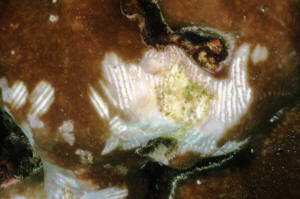 Genus Sparisoma : Eight species. Foods/Feeding/Nutrition: A common misunderstanding with this group is what they eat. They rarely feed on actual live corals tissue, but stomach-contents analyses have shown they do derive most of their nourishment from scraping organisms, mainly algae, living in and amongst dead coral substrates. Please see the accompanying image of how this is accomplished. Yes, they do chew off the live and dead heads of corals in gathering this material. Some aquaristic writers have listed snails, crustaceans, shellfish and urchins as real and potential food items for captive care. Maybe a successful long-term approach to feeding these species might take the form of algae etc. mashed food being somehow applied to coral skeletons...