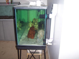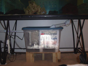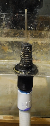 Thanks! Silencing pb overflows 10/8/08 Just wanted to say thanks for your wisdom regarding silencing Durso overflows. After I moved my sump to the basement, the overflow rumble was very noticeable. By adding two ¼" ID airlines into the Durso head, each about 2' below the top of the water, the overflow is now silent except for the waterfall into the box. <Glad you found what you needed!> Much thanks! <Cheers, Mich> Plumbing Options/Overflow 9/19/08 Hi crew- <Hello Jim> Many thanks for such a high value resource/community! <Thank you!> I recently had to move my 75g reef tank to install some floors. To do so, I purchased an extra drilled 75g, plumbed it inline in my basement next to my sump, and the job went relatively smoothly. Now, I am ready to move things back, and here is my dilemma... The old tank is a reef ready system with a corner overflow and custom pipe/float system which works well (and is absolutely silent). The temp tank is NOT reef ready, but was well drilled (one IN and two drains, all with nice bulkheads, 1.5", etc) - nice... I have been trying to figure out how to make this temp tank work, since I'd like to buy back the corner overflow space (given the fact that a 75 isn't all that large). <Okay, I hear you!> I haven't been able to find much on how to configure the drains so that they will operate SILENTLY (my sole requirement). On the outside of the tank, the drain plumbing already has an upwards facing T with some removable pipes that serve to vent the system. I have found that they gurgle a bit. I am SURE it must be possible to address this, but am not entirely sure how to do so. Here is my plan: cover the vents with caps that have small holes with airline tubing with valves on them, then adjust until silent. <If the noise is coming from the airlines there is a simple solution, not so simple to explain in text, but I will try. Take a 1-2' length of PVC pipe and put a cap on both ends. Next, on one end, drill a hole just large enough to slip your airline into. Then on the other end drill the same sized hole and slip another piece of the tubing in there. This acts as a muffler, much the same as used in cars. It sounds idiotically simple, but it does work very well.> Will this plan *completely* address the noise issue while also responding well to any possible fluctuations in pump output? <The above will fix any noise issues with the airline. If you are getting noise from the drains themselves, you need something inside the tank to keep the drain from being open to the air in the room. Something as simple as a PVC elbow in the bulkhead, with the open end facing down into the water. Pump fluctuations should not make a difference in anything but the water level.> I have a Poseidon PS3 one floor (and ~45 feet) away from my display system. If it will NOT completely address the noise issue, do you have any alternate suggestions for how to configure this drilled tank (or should I just use my reef-ready tank with the corner overflow)? <Try the above, run from the 'reef ready'!> many thanks! Jim Gray <Welcome, Scott V.> Re: Plumbing Options/Overflow, noise f' 9/22/08 Thanks for the tips- <Very welcome.> I have a follow-on question- <Okay.> I am finding that I have some noise by introducing air via airline hose. The noise is primarily in the plumbing and in my sump. I can add some pipe insulation around the flexible hose the noise is coming from, and I can probably live with the noise in my sump (but I'd rather do it the RIGHT way). <Pipe insulation does help. If it is the turbulence within the pipe itself, a rubberized undercoating (spray or roll on) on the pipe will help this too. Also just anchoring/attaching the line to the stand or wall will cut down on this noise. With a properly set up overflow, this line noise is typically all that is heard.> I am presuming that I'd really rather go full siphon, if possible (this would be the quietest situation, right - no turbulence at all?), but either of my drain hoses running full siphon beat out my pump. By that, I mean that the tank will drain down to bottom of an elbow in one of my drains. I am thinking of adding a valve inline to my main return and trimming it back a little until I can run it at full siphon, keeping the other return dry, as a pure emergency line. Doing this seems a little fragile (as does this whole system, to be honest). I guess it presumes that my pump output will be relatively constant (which I suppose it should be) and that I have an emergency drain (which I do). <This will not work, you have made half my point for me here! The problem is twofold. First, the siphon will inherently change or fail. The pump output changes (clogged or dirty) or the overflow line has buildup inside, maybe becomes clogged altogether. The pump fails or slows and you end up with a maddening flushing noise, the overflow line has the slightest issue and water is on the floor. The second problem with this 'overflow overclocking' is the idea of a safety drain. If this safety drain relies on a siphon it assumes the siphon will start. Many times it will not. If the safety drain is gravity fed it will not keep up with the flow from the full siphon drain if the first overflow fails. Take a 1.5' bulkhead. It will flow 750 gravity fed, over 1200 siphon fed. This is quite a margin to account for.> At any rate - does this sound like a good idea? <Nope, not in my house.> What do others with this problem do? <Take the steps mentioned above to cut down on the pipe noise.> thanks- Jim <Welcome, Scott V.> Re: Plumbing Options/Overflow 9/23/08 Ok - I will try to make this my last question on this topic - appreciate your help/patience! <Heee, no problem.> Turns out that the noise in the sump (or pipes) is NOT going to palatable. <Does your drain line(s) run under the water in the sump?> The sump is right under our bedroom, and the air traveling through the line and into the sump was not subtle (not a good night's sleep, unf). So, I am going to have to w