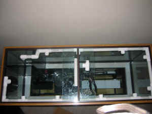Tank move, lighting choices and closed loops 2/3/05 First off, I'm amazed at the info I've learned from streaming through all these pages. Thank you ahead of time again. <Glad you have benefited!> I am moving to Florida and must break my 180g down. Possibly several months before I will be able to restart. Unfortunately will not be able to save LR but can reseed it. <If you can't save the live rock, please sell it or give it away. Once it dries, I would not suggest trying to re-use it. It will be full of organic matter from all of the bacteria and tiny critters that died upon drying.> Current FOWLR, next set-up to be reef (some SPS, Mostly LPS, 1 xenia, 1 clam). Tank is 72x24x24. After the sandbed, the water column will be 20". Currently, I am looking at the Coralife Aqualight Pro HQI 3x150W DE HQI, 4x96 Actinic. Obviously, I will replace MH lamps w/Aqualine bulbs. Will this offer enough light if specimens placed at appropriate heights? Any good or bad remarks\reviews for this product? Or should I purchase another manufacturer? <My experience with Coralife lighting products is mixed. If you are going to replace the lamps with Aqualine lamps anyway, why not look at AquaMedic fixtures? They have a better reputation for quality and the lamps you want will be included in the (admittedly much higher) price. Aquamedic produces fixtures with PC's or T-5's.> I plan on adding large refugium and closed-loop water flow to hit around 20x turnover, but having some problems with schematics currently, any thoughts? I want to plan ahead. <Sounds good, but I am not sure what to suggest without a little more to go on. From the cuff... Be sure that the inlets to your closed loop diffuse the suction effectively (no sucking up fishies!) and use as few T's and elbows as possible.> Any thoughts on placing my skimmer AquaC EV240 outside my sump (changing water levels in sump tend to really play havoc-awesome skimmer though)? <You could place it outside of the sump, or simply elevate it so that the outlet will always be higher than the water level in the sump.> You have always been so helpful. I print out a ream of FAQ and just read and read, then reverse paper and print on other side-another 2 inch stack of FAQ. Wife thinks I'm crazy. Thanks <Glad to help! All of our spouses think we're crazy! Best Regards. AdamC.> Closed-loop circulation Hello, all! <Chad> I started a 75G FOWLR aquarium. It's started, cycled, and is now home to all my fish friends; a yellow-tailed damsel and a tomato clown. It has about 90 lbs live rock and 4-5" of aragonite sugar-sized substrate. Problem is that the water circulation flat-out sucks. Dangerously so. The only circulation comes from an Eheim 2026. (~250GPH) <Yikes, not much> In a week I should have the D&D Marine Terminator driven by a Pentair Quiet One 3000, which I _think_ should add an extra 250GPH. Then, finally, I've ordered an Eheim 1262, which at 5 feet, should boost another 500GPH for a total of 1000. Is that about right for a FOWLR? Too much/too little? <About right> But, here's my main problem: I don't know how I'm going to rig up this Eheim 1262 pump. I like the idea of closed loop circulation, but, it would be very difficult to work around the intake/return of the Eheim 2026 and the D&D Terminator. So, what's the trick? make the "loop" smaller as to leave more space around the perimeter of the tank? Or, can I, without a sump, hack out some sort of plumbing contraption such that all of my devices share a common intake and return? <They could share common intakes, discharges... but I would not do this... for the sake of efficiency as well as the ultimate probability of wanting, having to take one pump/filter off-line> The tank does not have a sump, nor is it drilled, and it's glass. <All can/could be arranged "over the top" with rigid and flexible tubing (connectors)... Eheim makes a bunch of these... and they're great, though pricey. Some of the online etailers (I think MarineDepot and Dr.s Foster & Smith (.coms) carry these> Also, I'm curious as to how I'd feed the water to the 1262. It's intake is 25/34MM, which is 1". I've not seen any 1" "intake strainers," only 5/8". What's the best way to get water to the pump? <See the Eheim site, the etailers I list... there are connectors made, available for this... factory made> An finally, is, in my case, a closed circulation system even the best way to harness the extra circulation potential of the 1262? Thanks so very much as always! - Chad <IMO/E, yes. Bob Fenner> - Tank Modifications, Follow-up - Thanks for the prompt response. <My pleasure.> Just one point of clarification. <Sure.> I meant to say that I would be using the shelf design as outlined in the book. My concern was is it possible to drill the holes needed centered on the back wall, 2" down from the top and sufficient distance from one another, and have this shelf built to span only what was needed to cover those drains (I.E. 12" - 16" of shelf covering the drains along the back wall)? <Should work fine, yes.> Then I would have space at either side of the shelf for returns, be it Sea Swirls or whatever. What do you think? <Yup, makes sense and will allow for the Sea Swirls.> Lastly, how far down from the bottom of the bulkheads can I end the shelf? <Likely right below the bottom of the flange.> In other words, if my drains are cut at 2" - 4" at center and the bulkhead bottoms are at 3" - 5", can I end the shelf just below the bulks? <I think so, sure.> Will this hamper water volume/flow in any way? <It may, but the beauty of silicone is that you can remove, re-glue if necessary. You are going to do a full set of leak tests before you fill with saltwater, yes?> Thanks so much for al of your help!! <Again, my pleasure.> P.S. Do you know any tank drillers in Northern NJ? <I don't - you should check on some of the forums, I'm sure you'll find someone in your area capable of doing this.> Thanks again!! <Cheers, J -- > Return spray bar Hi, <Hello> I've been reading th