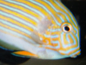 SPS Lighting (And Tang Selection) 02/07/10 Tiny Clown Tang, fdg. 9/30/09 Swollen mouth and funny tongue tang 3/5/08 Hi, I purchased a 3 1/2 in clown tang about 5 days ago, when I brought him home, he looked great, was eating well and exploring the tank. I have a 55 gal aquarium <Too small for Acanthurus lineatus> with the plan to move him into my boyfriend's 150 gal aquarium once he grows a little larger. <Oh!> Today he developed a swollen mouth and almost looks like his tongue is moving in and out of his mouth vigorously. His color has gotten darker since this has developed and he has become a lot less active. <Bad signs> I have done Ammonia(0 ppm), pH(8.0), Nitrate(10 ppm), Nitrite (0 ppm) and Salinity (1.024) tests, I don't think any of those things are the problem. I do have several different species of anemones in my tank, including Condylactis, carpet, and a long tentacle. <... not a good mix. See WWM re Anemone Compatibility> Could it maybe be a sting from an anemone? <Mmm, yes> No other fish in the tank (pearly Jawfish, 2 percula clowns) are showing any signs of disease. Any idea what could be wrong with my clown tang? If so what would you recommend to treat him? Ashlee <If you have another stable system, I would move this fish. The more likely cause of the trouble here is/was collection damage... shipping, what have you... Only time will tell whether the specimen will self-heal. The prospects are not good. Bob Fenner> Regal tang... sys... 02/27/2008 Dear WWM, <<Andrew today>> I think that your site is soooo great. <<Thank you for the kind words>> I was wondering if I could keep a regal tang in a 36 gallon bow and then be switched over later. <<Unfortunately not. Its never good to contemplate adding a fish to a tank with a view to upgrading later, bad practice. The main factor here is the unknown quantity of life...I.E. we never know what is round the corner, something might happen and the tank upgrade may not happen, then we end up with a fish that has stunted growth. Tangs such as this should only be considered when you have an aquarium of around 125 gallon>> I saw one at my LFS that is only 1 to 1 and a half inches. Also how long does it take for them to grow too big for a 36. thanks. <<Thanks for the question. A Nixon>> Compatibility, Clown Tang Hallo again, <cheers> I have had the clown tang for 6 months now...actually that is how long I have had the tank (plus cycle time) the tang is a bit over 1 1/2" long, and seems okay...I do try to feed a variety of food. but will consider the refugium option... <yes, my friend... please read more about this fish on the Wet Web Media archives. And in the Conscientious Marine Aquarist book too. The prognosis for this fish and its size are not good in the long run> though it is hard without an overflow set up. (no?) <not at all. You will want an Upstream refugium: a small tank above your display with an overflow hole... water is pumped up and flows back down.> Anyhow, Thanks for all your advice, I have a 33gal quarantine tank at the moment...so perhaps I will try it out... <excellent! It will be fine for this tiny trigger for many months> cheers again Bob <kindly, Anthony> Bob please take a look, Clown Tang... some differences of experience, opinion Hello: I am a biologist, specializing in habitat re-creation. All Tangs school, but not year-round. <Agreed, and some species, localities far more than others> The Clown Tang schools year-round and is one of the few Tangs that breeds gregariously. <Acanthurus lineatus? Does not school often at any of a few dozen places I have photographed and collected them. It is almost always found singly, I assure you> According to my sources at the American Marinelife Alliance, only Tangs caught in the Philippines are usually drug-caught, and also from the Fiji Islands <What? Tangs are not targeted for the ornamental industry in Fiji by and large... and no fishes are captured there by anything other than fence and hand net techniques... In the Philippines, Acanthuroids are rarely taken with cyanide... again, I lived there and have visited on many occasions... other fishes are captured with poisons however> and the Clown Tang is rare in those waters. Call your local public aquarium, and ask them about their record of success. Bet you'll find they have a hard time with them too. <Don't know what you're referring to by a hard time... historic survival rates? I am sure you are right if this is what you mean... this species, A. lineatus does not fare well in captivity> I worked at the New England aquarium as a Grad student for a few years as part of my R.A. program at U.R.I. They couldn't keep them alive under absolutely perfect conditions in schools of 6 or more. The only way they kept them alive was to increase school size to more than 20. <Interesting. About what size individuals were involved? Can you tell me where these originated?> Incidentally, almost all Clown Tangs (Acanthurus lineatus), are collected in Micronesian crystal-clear waters in depths of about 25 feet using nets. They do occur on reef flats and on the SEAWARD reef margin, but do not occur in shallow turbid water that I know of. I have checked six references on this and they all agree that the fish occurs in clear water only above the reef, <Agreed. This is overwhelmingly the conditions where I've encountered the species> though they may also be found in lagoons. All references I found say they require very well-oxygenated clear water. <Again, agreed> Like most Tangs, they are rarely caught using sodium cyanide as their skin absorbs the drug directly and damages the sub dermal tissue. Drug-caught Tangs usually die on their way to the wholesalers and never even make it to market. Tangs are easy to catch with nets when they school. One diver guides the school into seine nets held by another diver. Why use drugs? <Can't think of many good reasons... am surprised you seem to state that the group IS collected with cyanide, then categorically stat