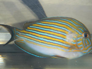 - Acanthurus lineatus - Dear Bob, <Actually, JasonC here today...> I am really interested in purchasing a Lined Surgeonfish. My dealer gets them regularly and right now has a 5 inch individual. He has been there for about 3 weeks. He is very fat and has great coloration. When I go up to the glass he becomes very curious and checks me out. I have been there a few times to observe him and every time he is eating algae and Mysis shrimp. If I purchase him, he will be placed in an 90 gallon FOWLR aquarium with a 3 inch Yellow Tang. Water quality is excellent and the water movement is about 12 times turnover. There are a ton of hiding spots for him and the other tang to hide. Do you see problems with them getting along in this size of tank? <Yes... these fish are well known to be hyper-aggressive in captivity and with growth. Additionally need a lot of space, more than a 90 gallon tank will provide.> If size is a problem I will be upgrading to a larger tank in the next year. <Then I'd wait to get one of these until then... keeping in mind that it still might very well kill many of your other fish.> There is a lot of algae growing in the tank and I will give them Nori soaked in Zoe and maybe Mysis at least twice a day. Thank you for your advice. Sam Reef (Real name) <Cheers, J -- > Clown Tang AggressionFueled By The Lunar Cycle? - 09/29/07 Here is my dilemma, I have a Clown Tang about 6-inches, and every few weeks he acts very weird. <<A very aggressive (even mean) species>> About two months ago he tried to kill my Purple Tang (luckily I got the purple out in time but he had 4 cuts about half an inch long and put him into another tank). <<Likely the two are together in a too small environment>> This month he has been fighting his reflection in the glass for the past 3 days. <<Typical behavior for most any territorial species>> My tank is a 125 with a 55-gallon sump and 200 LB of live rock, chemicals are all good. <<Mmm, yesand too small to be mixing this large (can exceed 16 in the wild), very active (likes LOTS of open space), and very aggressive fish (did I mention mean?) with other Tang species>> I was curious if the Full Moon cycle could up his aggression? <<Honestly, I cant say for sure But, if youre not running some type of controller/gear to replicate the Lunar Cycle how does the fish know? Or maybethe fish senses/feels a change in gravitational forces>> Because I found that most tangs breed in the wild by Full Moon, or New Moon. When it first got really aggressive was a Full Moon and this time the Full Moon just past. Thanks for your input. Kevin <<The Lunar Cycle may well induce a neurochemical change increasing aggression in this very aggressive species (is thought to happen to humans too)which is already exacerbated by the confines of the tank and too much rock/not enough open swimming space for the Tangs liking. Regards, EricR>> Mixing A. lineatus and A. sohal....not gonna' have a good time - 4/8/07 Hi guys, <Hey Wes...> I really appreciate all the time you all put into answering people's questions. <Thank you!> WWM is probably my most trusted source of online info. <A very nice compliment...thanks again.> I've been thinking about adding some tangs to my aggressive FOWLR tank. <Okay.> It's a 55g but I'm planning (in about a year) of upgrading to a 180g. <I would probably wait until then to add any surgeons. I would especially not add more than one to a system of this size...wait for the upgrade.> I'm definitely planning on getting a sohal tang <Then wait for the 180...and even then I'd be very cautious in mixing an Acanthurus sohal with another surgeon. In fact odds would be against you on this one, even in the largest of tanks.> and have been batting around the idea of getting a clown tang as well. <Together with the A. Sohal. Not a good idea my friend, not in the least bit...not advisable at all.> After reading all the info on your site, I'm beginning to suspect there's a good chance these two wouldn't get along together. <More than a good chance!> Is this true, even in a 180g? <This would be true even in a tank of double this size. The boisterous personality of these two fish, not to mention they are con-geners would be a near disastrous mix.> Would I need to get an even bigger tank to house these guys for the long term? <Very big, one that exceeds the size of your average home aquarium, and even then my above comments would still hold true.> I really would like to have both, <It would have to be separate systems.> but if it's a flat out bad call, <These two animals have territorial issues with other tankmates, and especially other surgeons and mixing them is just not a good idea.> I'm content with sticking with just a sohal. <That would be best, but wait for the upgrade.> I'm also planning on getting an Atlantic Blue Tang (or possibly a sailfin tang) <Mmm...still not a good idea, at all...but better than the clown tang.> and a Porcupine puffer. <Too big.> Currently, my tank inhabitants are: Dogface puffer Blue-spotted grouper Snowflake Eel Bluejaw Trigger (Male) Banana Wrasse (which I'm thinking of giving back to the LFS) Two large hermit crabs <This is already far to much for a 55 gallon tank.> They're all small, about 3 to 4," except the eel of course. I realize that even in a 180g, all these fish together may be a bit of a crowd long term, <True.> but I figure I may lose one or two of them over the course of 5 or more years. If I have the good fortune of that not happening, I do realize I may need to give a couple away, which I'd be willing to do if need be. <Yes the tank is overcrowded as it is...> I'm considering returning the wrasse not for any major reason, but mainly because he's a bit too "hyper" of a fish for my tastes and also tends to hide a lot which doesn't seem normal to me for a wrasse. Maybe I'm wrong here? <Depends on the individual specimen and the personalities of those around him. He may be suffering from psychological/territorial crowding.> He also seems to
