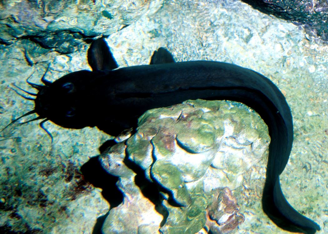 Only a pet-fish tenderfoot considers catfishes as "bottom sucking scavengers". Aquarists in the know are aware that the living catfish Order Siluriiformes is overstuffed with bizarre species that engage in all manner of lifestyles. From tiny half inchers to several hundred pounds, some are lowly cleaner-uppers, others top predators. There are even parasitic catfishes; by some definitions, ones that are parasitic on humans! Can you name a body of freshwater that doesn't include them? Catfishes are found worldwide in tropical to temperate freshwaters. But did you know there are saltwater catfishes too? There are; some are sold as brackish to tolerant-of-hard-alkaline freshwater specimens. Don't try putting these cats on clean up detail; they are not scavengers and will do poorly left to survive on leftovers or recyclables. What's more these fishes are extremely venomous, and will render a nasty poisonous puncture if handled carelessly. Classification: Taxonomy, Relation With Other Groups There are several freshwater catfish families with members possessing venom-bearing spines in their dorsal and pectoral fins; and even another principally marine family, the Ariidae, besides our subject group. Having been punctured by the worst of them over my thirty years in the trade, the Plotosids are number one in the hurt department. They look so beautiful and unassuming, but these cats are to be reckoned with. Both Burgess and Nelson state that their stings might be fatal. The eel-tail, coral, stinging or Tandan catfishes, family Plotosidae ("ploh-toe-sih-dee") are aptly named ("plotos" means swimmers). Their tapered bodies with pointed or bluntly rounded tails are almost in constant undulating motion. Nelson notes some thirty two species in nine genera, about half fresh, half marine. Freshwater species hail from Australia and New Guinea only.