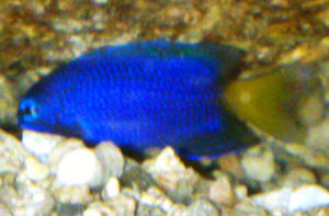 Pomacentrus (maybe caeruleus, but I don't think so). I have