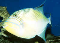 'Oh, isn't she cute?!' Invariably the appraisal of a newer aquarist on viewing their first juvenile specimen of the Queen Triggerfish'¦ Unfortunately for all, this observation is too often followed with, 'Let's buy it and put it in our system''¦ Just ask anyone who has dived much in the areas of the Tropical West Atlantic that take in the range of Balistes vetula about this fish'¦ The Queen Trigger defines the word 'tyrant''¦ Allowing and disallowing any and all other wild life in its area, even scuba divers. Yes, this species can be kept in with many other types of life; fish, invertebrate, algae'¦ when small/er'¦ but with growth, almost always comes a change for the utter worst. With the Queen eventually calling all to her bidding, or doom. If you intend to keep one of these majestic fish, do so with knowledge and forbearance'¦ and only with either fishes that can and will stand their ground, or animals that you won't mind missing. And, oh yes, this species is indeed cute when small'¦ But then again, so was I! Identification: The Queen is of course a member of the family Balistidae (note the similarity between this and the field of Balistics). The family comprises eleven genera of approximately forty species, about half of which make it into marine aquarists tanks. All Balistids share a general body plan. Laterally compressed, rough, plate-like skin, square-tailed, with three dorsal spines that along with their distensible underside help them "lock" themselves in places during while sleeping at night and where you and I can't pull them out if hunting them. All Triggerfishes canine like teeth for crushing and if you're interested 18 vertebrae. Compatibility: Triggerfishes range in size as much as temperament. Some species stay under a foot in length, a few to three feet or so! Geographically they are found throughout the warm parts of the Atlantic, Pacific and Indian Oceans. Some are circumtropical. Balistes vetula is a 'medium size' trigger, attaining some two feet in length maximum in the wild, though rarely more than half of this in captivity. In terms of temperament however, the Queen ranks up there with the most terrible and unpredictable'¦ the Clown Trigger (Balistoides conspicillum). Note that though a Queen (or other trigger for this matter) may not seem interested in consuming its tankmates, they are prone to change'¦ and 'test out their world' with their teeth'¦ including any and all exposed electrical cords, glass heater tubes, plumbing gear'¦ Everything should either be remoted elsewhere or heavily guarded against their abuse. Suitable tankmates run the gamut of a total mix of reef life (more successfully from the tropical West Atlantic'¦ though it does feed on benthic invertebrates in the wild'¦ particularly Urchins), to other very hardy and aware fishes like basses, morays and large/r wrasses. Again, there are no guarantees with housing Balistes vetula'¦ Starting with a small/er specimen, having it grow up with other livestock you intend to keep, avoiding offering other/similar food items to these tankmates, having a very large (hundreds of gallons plus'¦) system all may help, but'¦ Oh, and it might go w/o stating, but 'one to a tank' with this as with most other (with the exception of pairs, and HUGE systems) species of Balistid. Selection: A good Queen Triggerfish is usually easy to find. This species ships very well, and adapts quickly, in almost all cases, to captive conditions. 1) If there is more than one specimen to decide amongst, do go for the more outgoing one'¦ Some Triggers are reclusive at first'¦ you may as well start with one that is already socialized. 2) Size matters. There is, as stated, a desire to start with a smallish individual, but not too small. I have seen Balistes vetula offered at under an inch overall length. I would rather start on the range of 1 ½- 2' long. Larger, wild-collected (as opposed to traded in specimens) than 3-4' can be problematical behaviorally'¦ 3) About torn fins'¦ not a problem. Almost all specimens have some collateral damage from collection (all Triggers are wild-caught) and consequent holding, shipping. These tears heal quickly, sans the use of medicines. Systems: Obviously, the larger tank you have to house your Queen, the better with this as with all Triggerfish species. Having room to move is important for exercise physically, as well as psychologically for these fishes. In the wild they have very large lek territories'¦ spanning at least a few hundred square feet. Giving them space in captivity greatly improves their stress levels and puts off aberrant behavior. When small, a tiny specimen can be kept in a sixty gallon aquarium, but larger specimens need tanks of a few times this size. Matching gear should include at least an efficient skimmer, but I encourage you to 'go reef' with even just keeping such an animal in a Fish Only setting'¦ for all the benefits of having a live sump/refugium, with Deep Sand Bed (nitrate reduction), macroalgae culture (metabolite consolidation), and alternating light-dark period illumination (stabilization of water quality), among many other advantages. Foods/Feeding/Nutrition: Getting a Queen Trigger to feed is not hard. All meaty foods are generally accepted with gusto. Indeed, the saying 'A fish that eats is a fish that lives' definitely applies here; a Trigger that is not voraciously feeding is something to be querulous about'¦ and calls for a rapid assessment of water quality, disposition of tankmates, function of gear. Small specimens can be fed twice or more daily, larger ones can get by easily with just one feast per day. Again, whole or cut fish, shellfish, crustacean meat'¦ nutritious pelleted and other prepared format foods are taken easily. Disease: Diagnosis & Treatment: Happily the pugnaciousness of this species is well-matched with its resistance to environmental and pathogenic disease. If 'things' start going sideways in/with your system, your Quee