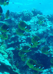 Chaetodon fasciatus, the "Red Sea" raccoon butterfly is so-named for its restricted distribution. Happily for the world of marine aquarists, Red Sea livestock is becoming much more available in terms of numbers to be had and lowered cost.