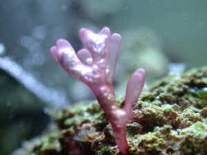 Coral I.D. (actually a red algae) Hi The Crew, <Howdy> Hope you guys enjoyed the hot summer. I have this thing growing out on one of my live rocks about two months ago, now it grew to about 4" around. It feel soft at touch, and the appearance like Japanese maple tree. Would like you guys to identify it for me. As always appreciate your expertise. <It's a species of Red Algae. Please see here: http://www.wetwebmedia.com/redalgae.htm> PS: Just thought you might interest to see this picture: One of my tomato clown in a purple tipped Condylactis anemone. SWEEEEET. <Very nice as well. Bob Fenner> Wayne Algae/Coral I.D. Hi The Crew, <Hi the fellow fish nerd> Hope you guys enjoyed the hot summer. <I'm thinking about shaving my entire body... heat index is over 100 here in Pittsburgh with serious humidity. Sneeze and it triggers a thundershower> I have this thing growing out on one of my live rocks about two months ago, now it grew to about 4" around. It feel soft at touch, and the appearance like Japanese maple tree. Would like you guys to identify it for me. As always appreciate your expertise. <it is clearly a red algae species... very attractive to me. Enjoy it!> PS: Just thought you might interest to see this picture: One of my tomato clown in a purple tipped Condylactis anemone. SWEEEEET. Wayne <with kind regards, Anthony> Cool Marine Plant... Where're those pix!? Hi, <cheers, mate> I have done search after search in every location I can to identify something that is taking over my substrate. I hate to bother you with questions but I have looked everywhere and I am starting to worry at this point. <no bother... and no worries> The first thing that I saw was this purple anemone looking creature that is attached to a live rock. <actually a fluid/bulbous red algae species> It doesn't seem to have a stalk, but just little stubby arms waving around. It has the diameter of a nickel and is no more than a centimeter high (and growing). Here is a picture. I wasn't worried but then around the same time that he popped up 30-50 of these other little guys popped up. <cool...> They started small, about the size of a pen head, but some have grown to the size of a pencil eraser or slightly larger. While the first one was on top of a rock (I guessed that possibly the first one on the rock is the same species and spawned the smaller ones), these little guys are only on the substrate. They are round balls with little dark spots that might possibly be stubby arms. Here is a picture of these guys. I think I can collect them if I have to but if they are good to have or won't do any harm, then I don't mind them. <no harm at all... likely you have or can easily find an herbivore to graze them down if you like... else enjoy!> This is a FOWLR tank. I GREATLY appreciate your help and your faq's are a bible to me. Hope all is well, Andy <our pleasure... with kind regards, Anthony>