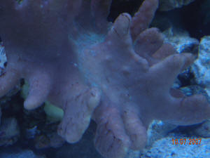 Star Polyps, fdg... & Others... reef maint. -01/05/08 Hello, Everyone here has always been great help to me. I've got a couple of questions. One is with my star polyp. I've had it for about 4 months and in the last 3 weeks, the tentacles are not popping out at long as they normally would. They normally look like a flowing carpet of strands but now its about half that at best where I can see the purplish part of its body. All the parameters look good. 37 gallon reef tank established for a year with a clown, royal Gramma, yellow goby, neon goby, Firefish, yellow tail damsel, snake polyp, 4 small/medium frogspawn, colt coral and some mushrooms. There are also a couple of snails and about 6 blue leg hermits, tiger sea cucumber. 25lbs of live rock with 3" DSB. Eheim Ecco filter, SeaClone Protein Skimmer , 190watts of Compact Flo....half 10k, half actinic, temp....82 degrees F, ammonia=0, nitrite=0, nitrate=6, ph 8.4, salinity 1.025 with 15% water changes (RO water changes for the past couple of weeks). I also include about a caps worth (5ml) of marine snow <a pretty much useless product (IMO)> and phytoplankton a week for added consumption. <Ok, but these corals don't eat phytoplankton...> The star polyp is about 4-5 inches from the top of tank where the lights are and its an area of medium flow. Any suggestions would be greatly appreciated. <It sounds like the coral is adjusting to it's new habitat (perhaps a less than ideal one). I would suggest putting more water flow over it.> One last question. Is it possible I may have a mantis shrimp in my tank? <It's possible, but this wouldn't explain anything you are describing.> While I've not seen anything, or heard any popping noises, I've had a couple of my hermit crabs die in the past 3 months where I've seen their dead bodies for a day then disappeared (possibly getting picked up from filtration), <Please see here: http://www.wetwebmedia.com/hermitdisfaqs.htm> but I did also had a medium size sand-sifting star that was fine for about 7months, then last month had a part of one leg missing and 3 days later had all of them missing where just the middle part of the body was present. <These stars are pretty much doomed the moment they are collected. Please see here: http://www.wetwebmedia.com/sndsftstrfaqs.htm> later that was missing. Is it possible any of the current inhabitants could have done this? <I don't think so.> My tiger tail sea cucumber has never been attacked in the 11months I've had him, and I would think he would have been a meal for a mantis shrimp if one was present. Also I introduced another clown fish last week from a smaller tank of mine and after 6 days he went missing in a 3 hour period that I was gone at the store. While I have not completely done a thorough search behind the tank, there aren't too many hiding places in the LR and didn't see him initially behind or around outside the tank. <Hmm... my guess is that he jumped and you just haven't found the body (unfortunately).> He was completely healthy and swimming about last time I saw him? What do you think? <See above. I could be wrong, but this would be my guess. Sorry to say... has happened to me a couple times too. :-(> Thank you always for your assistance. Frank X Meadors <De nada, Sara M.> Removing Xenia from Acrylic Tank Wall 1/2/08 Hi friends, <Hello.> I have quite a bit of Xenia. Most of the ones on rock are not any problem per se, but several colonies started climbing the side and front walls of my 80gallon Hex tank. <That's Xenia for you!> Unfortunately, I thought this was cool a few months ago, but of course I procrastinated doing anything about it and now need to address the problem. In the past I've placed rock next to colonies in order to trade w/friends, but the ones on the wall are not exactly close to anything they could adhere to.. and since the tank is acrylic, anything that scrapes the acrylic would do more harm than good. Can you make any suggested approaches to try? <Many times Xenia is easy enough to just pick off the sides of a tank. If that fails you can gently scrape it off with a credit card or acrylic safe scraper, again gently.> My last resort will be to buy lots of magnetic bars used to clean tanks and wait for them to hop on. <This could work; I would try simply pulling them off first. You will be surprised how easy Xenia (usually) comes off. Best regards, Scott V.> Filtration question, SW... Reef maint. 12/30/07 Howdy, Crew! <Hello!!> I have my 125 display tank in the living room, and 100 stock tank sump in the basement. I currently run an Iwaki MD-100 from the basement to pump +/- 2000 gph upstairs. The tank upstairs has about 150 lbs of live rock, a heater, and my livestock. There was no filtration physically in the tank until I started this project. The sump downstairs has one of the two system heaters in it, about 40 lbs of live rock, and the protein skimmer. I am now turning off my MD-100 at 9pm at night, from the sump to the display, turning on a Rio 2500 in the tank, and the skimmer in the sump. I go from about 2000 gph to about 800 gph. Would the lighter circulation be all right for the fish at night? <Should be.> I have a 1"-2" crushed coral bed. Flow is still decent with the small pump running. I aimed it at the front glass, so the flow splits and goes both ways. Even my anemone still has movement. Candy canes have feeding tentacles out further than I've ever seen them before. When the MD-100 is off, the sump in the basement catches all the overflow water (as during a power outage.) That being said, since the water level rises in the sump at night, I turn on the skimmer at night. If I left it on during the day, the water level is low enough, it doesn't skim at all anyway. I turn the main pump back on at 9am, and the skimmer back off. What I have considered so far: -Water temperatures being different, so I have heaters in tank and sump. <Good.> -Aeration, so I have the display tank pump aimed toward the surface to facilitate good gas