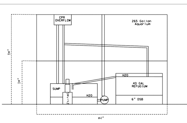 Re: Refugium Design/System Design/Maintenance - 10/07/06 Hi Eric, <<Hello John>> Thanks for your reply it confirmed that for the most part I am on the right track but if you could just clarify a few things I would appreciate it. <<Be happy to>> Is 1" of sand in the display tank too much? I know if it's not at least 5"-6" DSB for NNR than it should be shallow, just want to make sure it's shallow enough. <<Should be fine...will likely get rearranged a bit by water flow/critters>> I understand that the actinics at 12" off the water will be strictly for aesthetic reasons but that's just what I intended them to be. <<I see>> With regard to the 400w MH, if they prove to be too much could I use some kind of diffuser to cut down on the intensity in the tank? <<Mmm, can't think of anything that would be of real use here. If this proves to be an issue you can switch the bulbs to a higher Kelvin temperature (generally of less PAR), raise the height of the bulbs over the water, switch back to the 250s...>> Also could you recommend a DIY spot to look for me to build my own moon lights, I understand that the LED's need to be of a certain spectrum and if I do this down the road I want to make sure there would be some benefit not just look cool. <<Of a certain spectrum?...moonlights? Have never heard that...and have my doubts as to its validity...more marketing-hype if you ask me... Honestly, your "moonlight" can be as simple as a small low-wattage incandescent bulb left to burn 24/7. But if you're set on making your own you can try OzReef ( http://ozreef.org/diy_plans/lighting/neon_moonlight.html), or buy a book from Amazon on DIY moonlights for about eight bucks ( http://www.amazon.com/DIY-Moon-Light-Make-Your/dp/0975311107)...or pull up one of the computer accessory sites and order yourself a low-voltage "cold-cathode" (neon) tube in your fave color for about twelve dollars plus shipping>> As far as the RO/DI top off being buffered I mentioned that it runs thru two 24" cylinders filled with crushed coral, I was led to believe that this would buffer the water. <<It will...but to what extent? I would test the effluent re pH and alkalinity and assure these are being pushed back up to NSW levels>> I try to keep as automated as possible not only for ease but mainly for consistency in the aquarium. <<As do I>> If this is not adequate buffering can you recommend something fairly automated? <<Mmm, no...will require "manual" additions of a buffering compound to the RO reservoir as far as I'm aware>> Go back to my Nilsen reactor? <<Another possibility, though Bob is probably squirming in his seat as he reads this...>> The only reason I originally built it was due to using the calcium reactor with CO2 I did have trouble with low pH. <<Not uncommon...sometimes a matter of striking the right balance between the tank and the reactor. If backing-off on the reactor is not feasible, adding a second media chamber reportedly helps with using up residual CO2 and raising the pH of the effluent>> I did not have a refugium at that time, I am hoping one of this size (100 gal) will help, especially with a reverse cycle lighting schedule. <<Should...some...>> I decided to keep my original plan for the refugium and sump (splitting the raw water) and if the flow thru the 'fuge proves not to be enough I'll have to address it later. <<Good enough...though I suspect all will be fine>> I decided to use Chaetomorpha and am hoping that the flow is enough to keep it "tumbling". <Mmm...Anthony would disagree, but in my experience the Chaetomorpha does not need to "tumble." I have had mine sitting "static" for more than three years with no problems. Not to say that "tumbling" might not be better...just not a "necessity">> If I needed more flow you suggested a pump in the skimmer side of the sump to the 'fuge. <<Yes...have used this method myself in the past>> The return from the 'fuge should be big enough I used 2" between the two stock tanks, but given that the sump is divided in two with the skimmer side spilling over to the pump side to maintain a consistent water level for the skimmer, wouldn't that start draining the skimmer side down? <<Only one way to know for sure...but consider this, the flow "in" to the skimmer chamber will also increase>> Would it be acceptable to just put a small powerhead in the 'fuge? <<Is what I am doing with mine now>> As far as the closed-loop circulation in the display I did not mention that the two Mag-12s will be right under the tank with only a couple of feet of head (I'm not crazy about this for noise reasons but once again I just couldn't bear to put more holes in my floor!). <<Ah, I see>> I'm starting to rethink the canister filter being pumped in a closed-loop fashion from the skimmer side of the sump. I have read on WWM that you should not use chemical filtration before skimming, and certainly this design would be taking some of the raw water and doing just that. <<True...but a minor concern in my opinion. Still, you could do this from the pump chamber if it suits you better>> If I pump it from the pump side of the sump would the chemical and mechanical filtration have a negative effect on any plankton trying to reach the display? <<Some will be lost, yes. I use two chemical reactors in my sump (between the skimmer and pump chambers) and have observed very minimal "plankton" removal. The benefits of the chemical filtration outweigh any disadvantage re I feel>> What do you think of simply putting a 50 or 100 micron sock with carbon right in the pump side of the sump, sounds too easy but sometimes we think too hard in this hobby. <<Some folks use this "passive" method of chemical filtration...has some benefit, though much less effective in my opinion than "active" methods of pushing the water through the media>> Do you prefer Lugol's iodine or something like Tech-I from Kent? <<I use/prefer a "Lugol's" solution...must be used very carefully/dosed precisely with care given to how/where it is intro