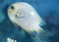 Damselfishes, family Pomacentridae: Of the forty species of pomacentrid species found in the Red Sea, a few "standards" of the pet-fish trade abound on sandy slopes (others on the reef flat, rocky slope). The one Clownfish of the Red Sea and one of its three symbiotic Anemones and: