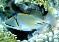 Triggerfishes, family Balistidae. There are a few sandy slope Triggerfishes that marine hobbyists may use, even in reef tanks.