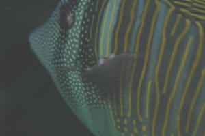 Re: Sailfin Tang Injury, Skin Disease? - 04/22/2006 Hi Sabrina, <Hi, Andrew!> Thank you so much for your reply, <You bet.> I'm glad the images were of some help. <Yes, great help. An image (well, a clear one anyway) is worth so much more than the cliché© of a thousand words.> In answer to your query about the high output fluoro's.... to be truthful I don't know if they are or not, but in any case I've specifically chosen corals with low light requirements, all LPS corals. <Even many LPS have need of more than normal output fluorescents, so do please take a look at the needs of those you keep or have an interest in keeping.> Will work on raising the Ph and salinity a little over the next week, <It's not "off" enough to be an incredibly urgent issue at this point anyway.> but am unable to treat this fish in quarantine, as I no longer have my smaller tank. <Oh my....> I know its not ideal, <Not at ALL, for many, many reasons.... the safety of your invertebrates, bacterial colonies, and more for just one reason....> but the guy at my LFS assured me the tri-sulfa would not harm anything, aside from killing some of the bacteria in my filter.... <And possibly harming/damaging other life....> but should be fine with only 2 or 3 treatments. I hope this was accurate!! <I would discontinue treatment and do a water change, to be quite honest. I would also (quickly) look into a quarantine tank.... Even one of just 10 to 20 gallons would suffice.> Once again, thank you so much for your advice. -Andrew. <Glad to be of service. Wishing you well, -Sabrina> Sailfin Tang Injury, Skin Disease? - III - 04/22/2006 Ok it seems I'm in a spot of bother then!! I Just did a water change yesterday, will have to mix up a new batch. I'll put the carbon back into the filter to absorb as much as I can over night. Will let you know how it goes in a couple weeks. Thanks again. <Glad to be of service. Please do look into a quarantine tank.... It will be a small or moderate expense now, but will save you much in life and frustration as time goes by. Read most any of our saltwater ich FAQs files to understand how vitally important a quarantine tank will be to you. Take care, -Sabrina> Sailfin Tang Troubles 4/4/06 Good evening, <Hi there Scott.> I've been looking through your site for information about the condition my sailfin tang is experiencing. The site has been full of helpful hints but has not led me to the exact situation. <Hmmm'¦.okay.> Today I noticed that the tang has bulging eyes and it's body almost appears bloated, the bloating may be explained by the fact it's always eating <Hehe, that would make it fat not bloated.> but this seems a little to excess. <Okay.> It has not been experiencing HLLE symptoms or those of Ich. It is about 5-6 inches long and has been in the tank for almost 8 mos. The one thing I thought was odd is that it's aim is off, meaning it goes to peck at a piece of food and misses, that is definitely not like this fish. <Water Chemistry reading? Diet of animal?> I have a 125 gallon tank with just a couple fish, coral beauty, diamond bar soldier, damsel, etc. (nothing too aggressive) and about 75 lbs of live rock. Everyone seems pretty happy. I do water 20 gallon water changes on a one week, two week cycle. I'd be interested in your thoughts to see if this sounds like a problem or just a phase?? <Sounds like a water quality issue to me.> Thanks in advance. Scott <Adam J.> Sailfin Tang skinniness 12/18/05 Hi Crew, <Nicole> There is something wrong with my favorite fish, our Zebrasoma desjardinii. We have had him for almost a year now (purchased 1/28/05), and he has always been very healthy, active and curious. About a week ago, I noticed that he looked kind of skinny, but I wasn't sure if I was just imagining it, so I kept my eye on him. He seemed to be eating just fine, but he seemed like he was lacking some vigor in the way he went after the food. About four days ago, I thought I could see a redness just under his eyes, but not on the surface of his skin. It was like the lights were kind of shining through, like when you shine a flashlight through your hand. <Good observations, descriptions> Again, I wasn't sure if it was something new or I was just being hyper-vigilant. When I got home this evening, he was hanging out near the bottom of the tank, which is not like him at all. He did come up to eat, but again, he seems a bit lethargic to me. So the symptoms are: lethargy; redness under the eye; skinny. <Good review> Here are the tank specifics: 150 gallon tank with refugium and skimmer (sorry, my husband handles all the "hardware), lots of live rock pH = 8.2 Ammonia = less than 0.25 <Mmm, should be zip...> Nitrates = 0 Nitrites = 0 Spec. gravity = 1.022 <I would raise, keep this near seawater strength... 1.025> Calcium = 390 Alk = 6 (107.4 ppm KH) I have buffered this and will re-test tomorrow Temp. = 26.3 C Other inhabitants (who all seem very healthy, by the way) are a Lemonpeel Angel, a False Percula, a Black Sailfin Blenny, crabs and snails. The Blenny is the most recent addition to the tank. He was added back in September after a month in the QT. Lemonpeel and Percula were added to the tank back in April and March respectively. So how can I best help the Sailfin Tang? We have a QT, but since I have no idea what is wrong with him, I have no idea how I would treat if quarantined. Any insight would be greatly appreciated. Thanks! Nicole <Hard to imagine that after a year your Sailfin is languishing from either long term exposure to less than healthful conditions, and/or nutritional deficiency... but this is the likely scenario. I would try bolstering the fish's health by soaking foods in a supplement (Microvit, Selcon...) and offering some fresh marine algae... that you're likely culturing in your refugium. Additionally, I would add weekly dosings of Lugol's solution (for iodine). Oh, and raise your spg as mentioned above. Hopefully you will be able to reverse this trend. Re: Sailfin Tang 1