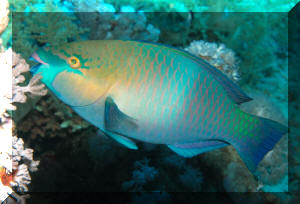 Filament-Finned Parrotfish. To two feet in length. Pacific Ocean.