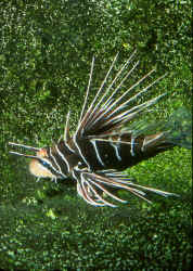 Suborder Scorpaenoidei. Contains world's most venomous fishes. Seven families, about 96 genera, 544 species. Family Scorpaenidae, the Scorpionfishes and Rockfishes. 56 plus genera and 388 species. Subfamily Sebastinae, the Rockfishes. Important foodfishes. Four genera, about 128 species. Subfamily Scorpaeninae, various Scorpionfishes. 15 plus genera with more than 150 species. Subfamily Sebastolobinae. Three genera of five species. Subfamily Plectrogeninae. One genus, two species. Subfamily Pteroinae. The Lionfishes and Turkeyfishes discussed here Subfamily Setarchinae. Three genera, five species. Subfamily Neosebastinae. Two genera, twelve species. Subfamily Apistinae. Three monotypic genera. Subfamily Tetraroginae, Sailback Scorpionfishes or Wasp Fishes. 11 plus genera and 35 species. Subfamily Minoinae. One genus, 11 species. Subfamily Choridactylinae (Inimicinae). Two genera, ten species. Subfamily Synanceinae, the Stonefishes proper. Six genera, ten species. Family Caracanthidae, Orbicular Velvetfishes. One genus, four species. All marine, found in the Indian and Pacific Oceans. To 7 cm.