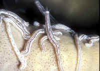 with prominent dark longitudinal lines. Found on, in large sponges.