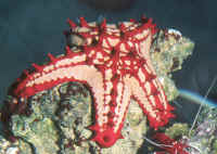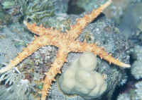 Roman Sand Stars Hi again, Thank you for answering my lighting question so promptly. I am glad that I am doing the right thing. I have 7 sand stars to work the sand but I have noticed that for some reason there is 2 or 3 of them on top of one another, like a dog pile, there that way for a while then they move on. why do they do that??? are they mating??? or are the fighting??? none of them seem to have any damage on them at all. do you know why they do that? <I do not know what they are doing and I am not concerned about it either. What does concern me is their presence at all. These burrowing starfish tend to sift through the sand to eat the smaller creatures found there. I think 7 will quickly strip your sand bed of life and then starve. I would not use any more than one and I might not use the one either. -Steven Pro> Do chocolate chip starfish sleep? I recently purchased a chocolate chip starfish (Protoreastor nodosus), and I was just wondering if they sleep. It just sits there sometimes, and I was wondering if it was just sleeping, or is it sitting there still doing nothing. I'm new to this stuff, I have never had a salt water tank. Just to tell you its a young starfish, so if it does sleep, I would like to know about how many hours a day this Protoreastor nodosus sleeps. -thanks- <Don't know about sleep, but echinoderms do exhibit periods of inactivity... some are cyclical (like eight hours on, eight off), diurnal (move about principally by day or night), others more random. Bob Fenner> Starfish? Hi Mr. Fenner, Very quick question today. In my refugium (with Miracle Mud, and Caulerpa ) I spotted a tiny starfish that is about 1/4" in size. I did not place him there. He is a very pale beige, you could almost say white. My main tank is a reef style tank. I will be putting a Fromia, and maybe hopefully a Linckia later on. The tank is 100G. in size. My question is that I would like to transfer this little starfish hitchhiker into my main tank, (it's just so cool that I got the little guy just like that). <Yes> I'm thinking he is quite possibly a sand sifting starfish, or it might be wiser to keep him quarantined till he grows bigger to try, and i.d. him in case he is not reef safe. Have you heard of starfishes hitchhiking in on things. The only possibility would be on the Caulerpa because everything else was new in the refugium, and the mud was in it's plastic packaging. Thanks in advance, Greg N. <Small Seastars do sometimes "just pop-up" seemingly from nowhere. Bob Fenner> Starfish letter, use Bob, I haven't written you in while. I have a 75 gallon reef system which I recently "resurrected" after selling all my livestock and moving to Colorado. <Ah, good to get re-settled in> Anyway, I recently restocked my tank (with a FFExpress) order. All three of the starfish in the Reef Relief bundle have died (actually the Orange Knobby so losing it's battle right now. Here's a copy of the letter I sent them. Let me know if you have any suggestions or ideas. <Okay> To whom it may concern; <I'd say/state "it concerns"> This is in regards to order number 77876, for Scot Davis. All three of the starfish in the "Reef relief: bundle have died now. The Hawaiian brittle star dies <died> on day #6, the Red Banded brittle died on day 9 and the Orange Knobby is dying now. All of them have kind of "rotted" away. A white, ich looking stuff is on the body on their "arms" fall off one by one. Everything else in the tank is doing great, including the Koran Angel. And the water tests out to normal parameters. Any ideas? Is there anything I can do for the Orange Knobby to keep is alive? Thank you for your time and consideration! Sincerely, Scot Davis Mancos, CO <Good letter (except for the one change in tense). Straightforward, to the point. Not much can relate to you re these species of Seastars suitability and needs in captivity that's not already posted on the WWM site... would have chosen other species, waited for a few months before introducing... Bob Fenner> CHOCOLATE CHIP STAR FISH Hi Mr. Fenner. I would like to thank you for all the help you've giving me. <You're welcome> My problem is that my emerald green crab is eating my chocolate chip starfish! What if anything should I do? YOUR FRIENDS JESSE II. & JESSE III <Yes, separate them! And quick... Mithrax Crabs are generally herbivorous, but will "cross the line" if hungry or the opportunity presents itself (the Star may have already been in trouble)... Bob Fenner> Did I Just Doom My Linckias? Hiya Bob. I may have gone and done something stupid, albeit unintentionally. I acquired my first Linckias (2 blue and 3 maroon) yesterday, and after acclimation, picked them up from their bags and transferred them into the aquarium, thus exposing them to air. The acclimation procedures did not indicate that keeping them submersed at all times was necessary, I just happened to read on another website that it is; did I just doom them to certain death? (ps...I read your entire FAQ's and articles on Seastars but found nothing to address my concerns.) Sadly, Sherri J. <This is likely no problem... some benthic invertebrates do have trouble with trapped air (notably Sea Urchins/echinoids)... let me assure you, after collecting, shipping thousands of Linckia laevigata and lifting them into the air aplenty... this is not a major cause of loss or diminished vitality. Bob Fenner> Little critters Hi Bob Today I went to change the little Chemi pure bags in my tank and discovered a bunch (50 or so) of these tiny little white starfish. What strain are they? <Strain? Impossible to tell from where I'm sitting... take a look through Baensch Marine Atlas v.3 maybe... about the most complete collection of images, information on aquarium species of Seastars> are they coral munchers? or are they ok to have in there? They are very very bright white, as their color is so bright , I thought that they are probably night time dwellers, I think). As always great thanks, and have a good day! <