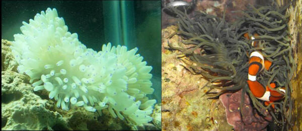 Sebae question! Reading!!! 10/21/07 I've had a Sebae now for a week, and when I first put the anemone into the tank, he was always totally open, looked fine. <... define "fine"... A pic?> After the clowns found him (2 days after I put him in), he still hasn't opened up totally yet. <Might be being abused by the Clowns...> He has moved to a spot he likes a lot, and none of his tentacles are shriveled up. Should I remove the clowns for a little while? <... maybe> And also, I'm not entirely sure, but I think that the tentacles that are closest to the light are turning into a golden brownish color. It is almost hardly noticeable, but is that a good sign? Could he be "recovering" so quickly without really taking any food? I try feeding him, but the clowns usually take the food out of his extremely sticky tentacles.. <Please read here: http://www.wetwebmedia.com/marine/inverts/cnidaria/anthozoa/heteraccrispa.htm and the linked files above. Bob Fenner> Clown + Sebae... reading 10/16/07 Greetings and salutations once again from the Beer capitol of the world! (Milwaukee, WI) <I salute you> I have a 30g with two wild caught (supposedly) perculas, one neon goby, one skunk cleaner shrimp, and one striped brittle star black and purple striped). All water parameters are fine, with the exception of salinity. It is at 1.023-1.024. <Fixed easily enough... outside the system... through adjusted water changes over time> My lighting is my weakest point. I have a dual PC lighting fixture, 96w x 2. Will be upgrading within the next month to MH. Any suggestions on manufacturer? <Posted> I have recently added a Sebae anemone, bleached, of course. <...?> It has been in the tank for almost two days now, and when I try to feed it, it will hang onto the food for awhile, but won't move the food towards its mouth. It is quite sticky, and has already VERY securely stuck itself onto a piece of LR. I put him there, because the top of the rock is only about 4 inches from the light, and he seems to like it. Anyways, could he still be acclimating? How long will it take until he is used to the water? <... likely won't> Also, he might not be eating, but it seems like he sure is going poo quite a bit. Brown, stringy stuff is coming out of his mouth. I hope it is poo.. But so far he seems to be ok. The clowns have taken up residence in him, and the male smaller one) is shaking quite vigorously while he is entangled in the tentacles. And, to speed up the process, the clowns are taking the "poop" and moving it out of the area of the anemone. Normal? <At times> Thank you guys very much in advance. I have learned so much since I started coming to this site. It truly is unbelievable the relationships, and the importance of the critters we have in our aquariums. I have grown such a respect for the ocean, and Lake Michigan for that matter. Heck, I've been thinking about going back to school for marine biology! <No need for that right now. But do read: http://www.wetwebmedia.com/marine/inverts/cnidaria/anthozoa/heteraccrispa.htm and the linked files above. Bob Fenner> April First (Fools) Day picture re above at right image, modified by Zo Heya Doc... The cool pic of your anemone and the freshwater Betta did indeed sucker quite a few normally sane folks... a few freshwater fish can be slowly acclimated to saltwater conditions, and they assumed that "Dr. Freeman" (biologist?) had done exactly that. I almost convinced a couple folks that in fact, the anemone had been acclimated to freshwater! (patently absurd) I put the composite together last night in preparation for today's "April 1, Special Edition" Daily Image. In another life (oh, 4 years ago or so) I was an art director for an advertising firm. The Photoshop work took about an hour. I had I.D.'d your anemone in my own photos as Heteractis crispa, though I'd never seen one so purple so I had my doubts (and it could well be a weird M. doreensis "Corkscrew", which is pretty common in that color) but I was later relieved to discover that Bob had also identified it as H. crispa, without he and I discussing it! Macrodactyla doreensis has fewer, curlier tentacles, and a more obvious, broader 'disc', flattish area around the mouth. But the deep purple is very common in the corkscrew, and RARE in the H. crispa - so Brian may be right there too. In any case, they are not the same animal! Attached are the source images for the composite. The anemone is my shot, the Betta splendens is from Bob's archives. Cheerio! -Zo Sebae Anemone 1/30/06 I recently purchased a small sebae...it is bright green with blue tips. I have a 30 gallon tank and I increased the lighting to 96 watts. <Not enough light for this species.> He stays open and looks pretty but I tried to place him near the top but he wouldn't use his foot <pedal disc> to hold on and the current eventually took him to the bottom of the tank. After 3 or 4 days he was still there at the bottom. He was not attached with his foot, but still looked open and nice. I tried again to move him towards the top, this time I used some bubble algae to hold him there. Any ideas on how to make his foot work? <Josh, you picked a difficult anemone to acclimate to aquarium life. It requires strong lighting for starters and a variety of sandy and rocky locations where it can choose to anchor itself along with pristine water quality. You cannot make/entice an anemone to anchor. When they are in a location they like, they will then anchor. I'd see if I could return this anemone and exchange for a bubble tip, something a little easier to keep. James (Salty Dog)> Lighting VHO vs. PC, anemone feeding, color, Clownfish eggs 12/13/05 Hello, I have a 4x65 watt CoralLife power compact fixture on my 75 gallon aquarium. I am keeping some SPS's, including a 6 month old Acropora frag that is brown and fuzzy with purple tips. It is toward the top and doing ok, but obviously due to the lack of light it is growing slowly. I am building a canopy soon and I have the opportunity t