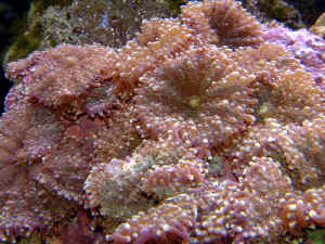 Re: Another Question (Corallimorph problem) Thanks for the quick reply. The 'room seems fine today as you predicted but if I read your answer correctly, something different is going on here. I've seen the 'spaghetti' and found what it was in your FAQ sheets. I resaved the picture in BMP format in case that works. The mass being ejected this time was more like a mucus with small white specks in it. The stuff was a pale green in color. After I wrote, I checked and the slime had disconnected and stuck to the LR. Today there's no sign of it. Since it doesn't seem any worse for wear, I guess there's no rush but it would be nice to know what's going on if it happens again. <I was able to open the re-saved pic. Thanks! It looks to me like this is ordinary mucous/slime that any coral will produce when disturbed. The "stuff" stuck in it is probably just bits of sand and/or detritus that stuck after the mucous was expelled. Definitely nothing to worry about! Adam> Troy Mushroom Corallimorphs 12/16/03 Hi Bob, <Anthony Calfo in his stead> I have a small 40 gallon Marine tank that has been running for three months. I have a Fluval 203 filled with Matrix and Bio-Rings and returning to the tank with a Bio-Wheel 30. I also have a Maxi-Jet 600 and a 96W Cora-Life Power Compact. I have about 10 pounds of dead rock as a base and 15 pounds of live rock with a gorgeous blue coralline algae that has developed since it has been in the tank. I have almost no diatom or bad algae since I added about 6 strands of grape Caulerpa growing well. I only have one fish, a small Blue Fin Damsel that I used to cycle the tank. I also have two baby starfish I got from somewhere (I had a sand-sifter die), 10 Hermits, 5 Turbo Snails and a fantastic population of big copepods. I have 3 Red Mushroom Corals on a big flat rock with a forth budding, oh and I have two Cleaner Shrimp (one large one small) that hang out under the mushroom rock and come running to the front of the tank for food whenever they see me, lol. I did not think shrimp were that smart! I plan on making this a mushroom tank an adding more mushrooms and was thinking of Metallic Greens first and a couple of fish maybe a Flame Angel, Royal Gramma and a Banggai or a Flame and Bi-Color. I was also thinking of trying a Sebae and a couple of Percs. I use Kent Essential Elements once a week and do water changes once a month. My questions are; What other supplements do I need for mushrooms (there are so many out there I am confused which are good for Shrooms)? <I favor water changes and specific compounds (iodine, calcium hydroxide, and carbonates basically). No care for dilute mixes of fancy supplements> Do I need to feed them phytoplankton? <not likely... your mushrooms are zooplankton feeders like most corals> If so, which do you recommend (I was thinking of Kent Micro-Vert and Phytoplex)? Who is better, Coralife or Kent for Invertebrate Food? <some folks would not take either for free. I'd recommend a refugium instead and occasional target feeding with whole prey like thawed frozen Mysid shrimp.> Can I feed them Frozen Brine or Formula One? <brine shrimp should rarely be fed (it is nutritively barren). There is much to learn here my friend. Please do read more into our wetwebmedia.com archives regarding feeding corals> Where did my baby starfishes come from (how do starfish reproduce?)? <we cannot say, my friend... we do not know what species you have (no pic or description), We discuss various strategies of invertebrate reproduction (including starfish) in our Reef Invertebrates book ; live-bearing, fission, asexual and sexual reproduction.> Do Pygmy Angel fish eat Shrooms? <dwarf angels commonly predate on invertebrates> Can I keep a Flame and Bi-Color in the same tank? <with so many novice questions here mate, please let me guide you to our free archives to read FAQs and articles... and Bob Fenner's "Conscientious Marine Aquarist"> Is it to soon for me to add a Sebae? <please do not mix anemones with corals> Are they hardy? <if you can find a brown one (not yellow or white... also writ about on our website)> Will it kill my Shrooms? Well, so far so good, but now is when amateurs tend to get in over their head, lol. I have a QT tank set up with a big sponge and tiny canister filter (I will take out the carbon if I have to treat the fish) and a Damsel in it nice and cycled for my new fish. Thanks, love the book. I just ordered the book on Coral Propagating. Mark <thank you very kindly my friend... you are truly on the right track to read and educate yourself and then ask questions. More reading... more reading. Anthony> Actinodiscus questions - 12/2/03 Two weeks ago I purchased some striped Actinodiscus. <Nice> Since I've put them in my tank they've "hugged" the rock, not curled up, but laid flat or even curled back. <Hmmmm. Come to think of it, took mine a long time to adjust as well. Almost a full six months before full expansion> I've placed them on the bottom in a fairly quiet area. <Good> There is one other coral in the tank - a small tree coral. <No problem in my experience> I've added one dose of iodine. <Forget about it. Unless you test for it then I wouldn't dose it> Any suggestions? 55 gal standard tank 80 lb live rock 3 yellowtail damsels, 1 royal Gramma, several snails s.g. 1.024 Temp 75 Alk - high pH 8.4 Cal 400 Nitrate - near zero Lighting - 4X65w power compact - two Smartlamps (50% 10000K, 50% actinic), two 6700K Circulation - 2 MaxiJet 900's, Eheim Pro II canister Remora Pro skimmer <Nice setup. Sounds great to me. > Also, how can I tell where to place corals under my particular light? <if the corals need high lighting intensity, then place it as high as possible (as close to the light as possible) medium is somewhere around the middle levels of the tank, and low light is nearer the bottom if not the bottom> After I learn what level of light a coral needs, how do I know in my particular system how far from the light to place the coral to achieve the 