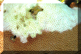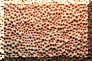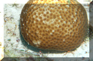 Family Siderastreidae, Vaughn & Wells 1943. Though hard to make out exactly with a live specimen and nothing to magnify the view, this widespread family's members are unified by characteristics of their individual polyp skeleton (corallite) structure. These are flush with the surrounding carbonate mass (coenosteum) by thick septo-costae, with the septa fused in the middle to form a fan or star-like grouping. Range: The six genera of Siderastreids really get around (five are Indo-Pacific, one Pacific and Atlantic). Found in the Red Sea, eastern African shores over to the mid-Pacific, Society Islands, along the tropical Eastern Pacific, tropical West Atlantic, Brazil, and tropical eastern Atlantic coast. Aquarium use: Oddly enough, for such common species in the wild, it is rare to find a Siderastreid offered for sale in the ornamental trade. Genus Coscinaraea Milne Edwards & Haime 1848. Now moved to its own family Coscinaraeidae Genus Psammacora Dana 1846, Pillar, Cat's Paw Coral. /WA Corals: