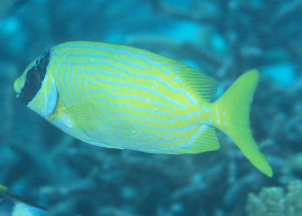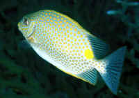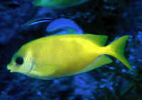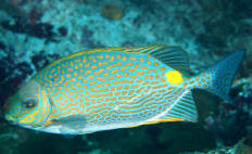 Most any reefer in the know is aware of the better species and genera of Surgeonfish/Doctorfish/Tangs (family Acanthuridae) that do a good to great job of eating filamentous and encrusting green and diatom algae. The Comb-Tooth and Sailfin genera Ctenochaetus and Zebrasoma rank supreme in this maintenance duty... with a few notable Acanthurus vying for top spots. Well, this is a tale of a related family of fishes (same Sub-order, Acanthuroidei) the Rabbitfishes, and their facility as avid algae eaters for marine systems as well. The family of Rabbitfishes, Siganidae includes 27 species of mainly marine (some venture into estuaries) tropical Indo-Pacific and eastern Mediterranean fishes. Among other unifying structural characteristics are their single row of bicuspid incisiform teeth in both jaws used for their principally herbivorous diet. Thirteen Siganids are schooling species, fourteen are associated more with coral reefs. Here we'll cover the ones of both varieties found in the vicinity of Malaysia and Indonesia in the South Pacific. Indo-Malayan Reef Species for Aquarium Use: There are other, larger, less beautiful, more-schooling/open water species. The following are the best choices for captive systems.