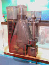 Your 12 millionth question on skimmers.... Greetings to the unfortunate soul who gets to answer this question! <I say a greeting> I read through the archived Q & A's (felt really stupid after the answer to my last question was right there--had read it months before I asked but the three remaining memory cells filed that info somewhere weird. Won't do that again, hopefully) and never really saw this addressed: <Okay> I got a Seaclone skimmer before I found this site...was switching it back and forth between the two tanks and the 10 gal quarantine tank, but with the high bioload in the 65 gal combined with a 5" lawnmower blenny being sucked into the Penguin filter (whaaaaaa, I hate losing anybody for any reason) and not realizing it for about 3 days, the nitrates have skyrocketed (about 100 on the red sea hard-to-distinguish test kit), and scrupulous filter pad rinsings and partial water changes over the last 2 weeks have barely helped (down to about 60-75?). Yes, I know I need to get a "real" skimmer, see Question, below details: I'm trying to happily pair up organisms two by two (except for the "kinky" ones who get paired up however they want) to try to induce spawning from everything from fish and algae-eating Nudibranchs to tunicates and microcrustaceans (and hopefully corals?). I'd like to get as much biodiversity going as possible, for the health of the system in general and to provide zooplankton food/maybe even get some to live and grow up. <Good plan, goal> Some day enough food to sustain Dendronephthya type corals and crinoids? <Someday, yes> That's the dream. I have a 29 gallon with the soft corals and a pair of (spawning!) transparent cave gobies, and a 65 gal with hard corals, 2 bar gobies, 5 neon gobies, a pair of gold-banded maroon clownfish and their bubble anemone (the minute it gets near the corals it'll be moved to another tank), a copper-banded butterfly, and will have a Kole tang for algae control when it gets out of quarantine (ca. 24" of fish total, on the edge of overstocked, I know...). Both tanks have a lot of snails and hermit crabs for cleaning and a lot of tunicates and sponges for natural filtration. I'm going to build a refugium to hang onto one of the tanks, eventually either tie them together (with a common sump?) or build a huge tank (does this urge for even bigger boxes of water ever end? keeheehee!) <Only with our endings> I want to eventually have all-natural sponge/tunicate filtration a la Steve Tyree, but got those books after I got too many fish to go with my few sponges, and would like to have real sunlight instead of the metal halides, but would have to tear a wall out of the house (slap! don't even go there....) <I won't> The Question: The Seaclone is adequate for the 29 gallon with the light bioload including mushroom anemones that supposedly don't want heavily skimmed water. That tank doesn't have nitrate problems, even with the skimmer off it for a week at a time. For the 65 gal with the higher bioload the Turboflotor 1000 sounds about the best for the 65 gal (or is this overkill?). <Mmm, no... can be adjusted down, or "pulsed" on a timer...> What does the needle wheel do to zooplankton? does it chop it into billions of pieces like it does the air bubbles? <Mainly yes, puree> I noticed that the Seaclone seemed to suck up a lot of the phytoplankton (DT's) I would add--I started turning off the skimmer for about an hour so the beasties could eat it first. Would a "real" skimmer rapidly suck up all the zooplankton and phytoplankton, too? <Yes> Could I get by with some clams to lower the nitrates if the skimmer will trash my zooplankton? <Mmm, a refugium, and/or macrophyte algae, DSB... other devices, livestock, techniques would be better to utilize all the way around. Bob Fenner> Sorry it's long, I can't seem to help it..... <No worries> Thanks! --Kari Skimmer question Looking thru WWM I didn't see this answered (but of course I could be wrong)... Is skimmer output affected by temperature? (about 50-60 F) <In general, yes. Higher temperatures yield more output> I recently got a used Red Sea Berlin hang-on skimmer from a friend...I placed it on my 55g temperate marine tank in my basement to see how it worked (considering using it for an upcoming 40g reef)...it looked pretty good at first, then bubble output went way down (no matter what adjustment I made), so that now it looks like a large SeaClone skimmer -- little tornado effect in the middle and not much foam...It has the original Rio 2100 pump (I'm looking into another pump, but my only Mag pump is only 500 gph...) <I would definitely upgrade this pumping mechanism> Looks like the reef will be getting a nice new Remora after all...Redpaulhus <Ahh, even better. Bob Fenner> Tank problems, Skimmer Bubbles Getting into Display Hello to everyone at WWM!! Thank you so much for taking your time to answer the questions that are thrown at you every day. <A daunting task some days.> My tank is a 46 gallon bow front. I have around 50 lbs of live rock, 1 yellow damsel, 1 brittle star, and a black urchin (a stowaway on the rock), plus various snails and crabs. About 6 months ago I started having trouble with algae. Not just a little but huge amounts of hair algae and other kinds that made my glass impossible to see through and that you couldn't just scrape off. I tried everything to get rid of it. All my water perimeters are fine and I even bought more test kits in case they were bad. I didn't feed the fish because I was afraid of adding more nutrients to the tank for the algae. My old protein skimmer died so I decided to do something drastic to the tank. I emptied all the water, threw out all the substrate, and took the tank outside where it was thoroughly cleaned. Added new aragonite substrate (washed first), scrubbed all my rocks with a toothbrush to get rid of the algae and put in my newly purchased Bak Pak 2R. I am hoping the animals make it. So far so good. <I will keep my fingers crossed for you.> Th