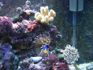 <Welcome! -Mich> Darby Can I have two cleaner shrimp? 3/14/07 Can I put two cleaner shrimp together in a 38 gallon tank with out them fighting each other? <Yes> I currently have a false clownfish and a maroon about the same size never fight with lots of live rock. Should I only put one in? <Two will be fine. However, I do suggest starting out with one. If you are happy with one, go ahead with the second. I was unable to view the picture, but not necessary to answer your question.> <Brenda> Damsel/tank (small) (skimmer) question 3/13/07 Good day to all the staff of this wonderful website! I've read this site and its archives for the past 3 weeks and its been very helpful, got a couple of questions though. 1. is it true that yellow-tailed damsels lose their "yellowtail" color when they mature? <Mmm, not really... actually intensifies under "ideal" conditions... good water quality, nutrition, social factors...> how long (is it months or years?) does a damsel of this kind mature? <Likely just several months... You can look on fishbase.org... and read their Cartesian graphs re such...> 2. my second question is, I have a 20 gallon with 2 yellow tail damsels and 1 clown <... too crowded... not healthy, sustainable> with about 15lbs of live rock, everything is fine and I don't plan on adding anything more, do I still need a skimmer? thanks in advance! <I would have, use one, yes. See WWM re... Bob Fenner> Nano Marine Aquaria; Newbie - 3/12/07 Dear Mr. Fish Person, <We have Ms. Fish Person's here too, as for me I go by Adam.> I've had fishtank as long as I can remember, <Me too but I don't remember what I ate for dinner last night so.......> so now (at age 17) <I do remember being 17, that wasn't long ago.> I feel ready to take on a marine tank. <Cool...you have lots or research and reading to do.> I'm planning on using a ten-gallon and I know that takes a lot more work than a larger one, but I'm on a budget, and I've factored that in and feel I have enough time and motivation to care for it. <Sounds like you are on the right track.> I would like to have an ocellaris clownfish <Go for a tank raised individual if you can.> and maybe a starfish later. <What type of starfish? Nano-Aquaria probably does not suit 99% of species offered, most large systems don't.> I'm going to use a hang-on-back filter and a skimmer, as well as a heater to keep the fish happy. Do you have any advice for me before I attempt to tackle this? <Read this (and everything else you can): http://www.wetwebmedia.com/nanoreefsysart.htm .> For instance, what kinds of small starfish are good for beginners? <Honestly o those offered in the trade, there are not any I would recommend other than those occurring naturally of inoculations of live rock and live sand.> Any feedback would be great. <Do keep reading, learning will make the "heartache" much less likely.> Thanks, Lindsay <Welcome, Adam J.> About Zoanthus Colony Polyp Corals 3/10/07 Hi, my name is Dan Zabler and I have had a salt-water tank since October 2006. The first step is admitting you have a problem...Oh wait, wrong place. Hi Dan! Mich here.> The main tank is a 29-gallon high. I recently add a 20-gallon long refugium to my system and I was looking at what types of fish to put in my refugium when I came across the Zoanthus Colony Polyp Corals. I was wondering what types of fish are safe to put with these polyps. I was doing some research and read that the polyps are poisonous and I don't want to put them in my tank and find my fish dead. <Can be toxic, but most fish have a natural aversion to eating things that might harm them.> Right now I have a Scooter Dragonet (Synchiropus ocellatus), <A real challenge to feed, often starve in captivity. Glad you have the refugium, do research their dietary needs. More here and links in blue: http://www.wetwebmedia.com/mandarins.htm> a Firefish (Nemateleotris magnifica), and two skunk cleaners (Lysmata sp.). I am going to get one or two more fish but I might change my decision on what fish to get depending on the effect of the polyps going into the tank. <I would be more concerned about the size of your tank. You need to choose any fish you add very carefully. You tank is quite small and psychological stress from over crowding is often a bigger issue than many appreciate. There are several options. A few you might consider may include your basic clownfish, Chromis and select damsels. Some other possibilities include: an Orchid Dottyback (Pseudochromis fridmani), a Royal Gramma (Gramma loreto), or possibly a Jawfish (Opistognathus spp.). Only consider the Jawfish if you have a deep sand bed in the display and your tank is completely covered, because they will find the smallest hole to escape from to go carpet surfing! But please only one more fish, two at the max.> If you could e-mail me back at this address that would be very much appreciated. <Will do!> Thanks, Dan Zabler <Welcome! -Mich> Starcki Damsel <and a Clown!> in a Nano -- 03/09/07 <Hi there, Mich here.> I really want to get a Starcki damsel for my 10G, but would also like to get a Percula Clown. Do you think it would be worth the risk? <No! Too much fish, not enough space!> Do you think if I put the clown in first and add the damsel a few weeks later it might work. <No, there is not really enough room in the tank for one of these fish, let alone two!> I'm prepared to watch for any aggression, and remove one of the fish if becomes a problem. It's only a 10 so taking it apart if I had to catch a fish isn't terrible. <Better to get a larger tank or set up another system.> I have done a lot of Googling, and it seems that the Starcki is one of the least aggressive damsels you're going to find, and they are gorgeous little fish. Some people even say theirs are rather timid. <But the tank is still too small.> I think it is worth the risk, and I'm pretty sure if the Damsel tried anything the clown could take care of himself. <You are setting up a system filled with a good deal of ps