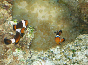 LTA <... no> and one more clown, a mushroom (all 3 from old tank)