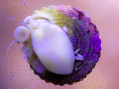 Coris wrasse on Pyramidellid snails hey, thanks for answering my question. By the way, I have another question.. I hope you will answer it to. How good is Coris gaimard in eating Pyramidellid snails? Do you know its rate of feeding? per minute or per hour? if you don't know, I hope you can give me an approximate. I'm just curious. Thanks to all of you! more power! God Bless! <raf> < again cories wrasse not your best choice for removing the snail. cories wrasse may eat them but not for sure. Better off with Sixline or fourline Later MikeH> - Gastropod Problems - Mr. Fenner, I am experiencing serious problems on my way to completing my 400G reef tank. This is not my first but will be my last project as far as aquaria. My main symptom to the problem is that I can keep any gastropod alive, these include 2 Queen conch, Astrea, Margarita and bumblebee snails (usually die within hours of introduction. Physical failure appears to occur during acclimation while slowly mixing tank water with shipping water. They just start to freeze). What does survive and thrive are my fish, P. Asfur, Queen Angel, Blueface Angel (in 50 gallon refugium, even 400 gallon wont hold 3 large Angels. He will eventually find his way to my 150 gallon that is being slowly transferred to the 400.), Potter's Angel, Clown Tang, Vlamingi Tang, True percula pr, Nigripes Clown pair, small shoal of green Chromis', and a small shoal of Highfin cardinals, 3 scarlet shrimp, many hermit crabs, microfauna including Featherdusters, a toadstool leather frag (from 150 gal), a brain coral (from 150 gal), and a newly introduced Maxima (life expectancy undetermined). Hardware include PS (EuroReef) UV, Calcium Reactor, DSB over a plenum in a 50 gallon sump, 2x250 10K Ushio, 4 x175 12K. I also use regular Kent Mag, Iodine and strontium supplements. I must confess the following. I started the tank with freshwater straight from the tap 9 weeks ago, but use RO for top off and changes. Uncured live rock was cured in the display tank... needless to say this wasn't a pleasant experience for the eyes and the nose especially in the living room. A knock-off brand salt called "Nautilus" was initially mixed but I now have switched to Tropic Marin (only one water change in). The salesman assured me it was "just like Instant Ocean." Other deviations from my past include using Rubbermaid tubs for both sump and refugium, and some "Black/Moon" sand for aesthetics. Also used white and clear silicon from home depot to help seal pvc piping (but have used successfully in the past.) I have run a PolyFilter and have seen no tell tale signs for chemical toxins... the filter changes from white to beige to brown. PH seems normal 8.2 to 8.4. Temperature 80. Eventually I hope to complete the tank with SPS, but will remain patient along the way. What toxic conditions might I have with this tank? Even the dreaded C. retrogemma introduced from the live rock transferred from my 150 gallon tank cant survive. I do believe I may still have some small ammonium levels, but nothing the PolyFilter has detected. What gives? What should I do? Sincerely, DD <Well... a couple of things come to mind. First, as much as I like PolyFilters, I wouldn't rely on them as indicators for the presence of nitrogenous wastes. If you think you have ammonia or nitrites, use a test kit - be certain. Next, I'm not at all familiar with Nautilus brand salt but have used Tropic Marin for many years without issue. While I have no real proof, I'd be willing to lean in the direction of the salt as the source of your gastropod problems, although there is another possibility that I'll touch on in a sec. It's actually not that easy to produce salt, and many of the lesser players have problems with consistency from batch to batch. You've done the wise thing by going to one of the brands that is well known for its consistency, Instant Ocean would be my second choice. It's going to take many water changes to get the Tropic Marin in as the primary salt in your tank, and I wouldn't do this via any large changes so take your time. You should be able to try again in a couple of months. So... there is also the possibility that the source of these gastropods is suspect - perhaps they don't acclimate well there, perhaps they have a bad supply - there are a couple of possibilities here, but it's really hard to be 100% conclusive about what the problem might be. As I mentioned, try again after you've got all the salt swapped out and see how it goes from there. Cheers, J -- > Crop Circles on Turbos? >I picked up 4 large turbo snails and I noticed that they had 20 - 40 small white circles on their back. Whenever they rub up against any of the live rock, they leave behind some of these "things". I called the pet store and they stated that they could either be eggs or worms - but whatever it was would not affect the rest of my tank. Can you give me any more information that that. They are not on the snail, only the shell, and all 4 snails seem very active. I'd appreciate any input you can give me. I just found your site about 2 weeks and can't believe how much information is on here, but didn't seem to find anything regarding these egg/worms spots. Thanks much, Liz >>I wish I could tell you something definitive about these mysterious circles, Liz, but I can't. My own first guess would be that if the snails appear to be rubbing their shells on purpose they might be depositing young, but I don't think they're eggs. I rather bad thought is some sort of odd parasitic infection, parasites are known to make animals behave in some truly bizarre ways, but again, I would be speaking from a position of complete ignorance. I suggest posting on our forums http://www.wetwebfotos.com/talk or on reefs.org forums. There seem to be quite a few folks who have this snail-breeding thing down, and they may have better information than I. Marina Possible Coralline Orange Lethal Disease? 3/7/03 Greetings crew, <Howdy> I have an Astraea snail who's