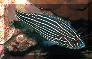 Sixline Soapfish or Grouper. Indo-Pacific, including the Red Sea.