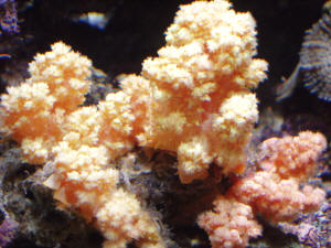 ID on soft coral 12/9/03 Hey guys (Anthony?), <whassup?> I was wondering if you could give me a positive ID on this soft coral. Im not too sure of what it is. <it appears to be a Sinularia sp. and if the color is true (light tan) then this is a stressed/bleached specimen and will need very special care to recover. Since their polyps are too small to target feed (organismally), it needs to take up nutrients by adbsorbtion. Thus, a tank with some nitrates (5-10ppm) and a heavy fish bioload will be helpful... a refugium would be great too> Any help would be appreciated...... Nathan <best of luck. Anthony> Red Lobophytum Hi, I bought a red leather coral @ a local pet store. I tried to find the genus on the web and found that it is a Lobophytum sp. The problem is the color. I could find no information that says that it comes in red. I did find a picture of one that looks just like mine but it is green. The one I have is BRIGHT pink. I'm wondering if this Lobophytum could be dyed. Although it has been 3 weeks it has not faded but the liquid in the protein skimmer IS red. If it is dyed how long will the color last? Lastly will the dye harm anything else? Thanks, Steve <<Hi Steve, I'm sorry to hear about your experience with your local pet store and your coral. As you already found out, Lobophytum is found in shades of brown and some variations in yellow and green. They are ideal for beginners being quite hardy specimens, but they don't come in bright pink. This and the red water in your skimmer aren't a good signs. Usually these dyes are water soluble so the corals will absorb them with water. There is no way to tell how long it will last or if it will harm your other inhabitants. I suggest returning the coral for a refund or if this is not possible, remove it to a quarantine/hospital tank to keep it from possibly harming your other inhabitants until it hopefully recovers it's normal color. Lobophytum requires strong to moderate water flow and this may be needed to help clear any possible dye. I would also look for a reputable shop that specializes in marine fish and reef aquariums and purchase a good book on coral husbandry before laying my money on the counter. You will save many times the purchase price of the book in the future. I recommend Bob's book or there are several good suggestions on WWM. The WWM has a chat option that you could make good use of as well. Again, I'm sorry this happened to you, it is really a horrible fraudulent practice. The best way to avoid it is become better informed before the sale, and don't make impulse purchases. This will also keep you from buying something that is difficult or impossible to keep or that might be aggressive. We are happy to help you make the right choices! Please feel free to write and ask questions before you buy. Sincerely, Craig>> Soft coral ID question I hope you can help me ID a soft coral fragment I currently have in quarantine. It's a frag, so I can't give a complete description, but it's a stub, about 2 inches long, a half inch think, a stubby cylinder. The main body is white, and when they're retracted its polyps are like little black dots, evenly spaced. When they extend, however, it becomes extremely bushy, with the white body cylindrical body effectively hidden behind the puffy polyps. I picked it up at a frag swap, and I'm looking to identify it before moving it out of quarantine. Any help would be greatly appreciated...Arthur <Arthur... a white stalked soft coral is either dead, dying, or aposymbiotic (non-photosynthetic). None bode well for you. Frag swap, LFS or mail order... you really owe it to yourself and the live animals you acquire to research their needs before you take responsibility for them. Our first goal here is to ID the animal as photosynthetic or not. If it is and is just simply bleached, it may recover but does not have the luxury of feeding organismally to support itself while waiting for zooxanthellae to recover like some LPS corals. Please send us a picture or look through Eric Borneman's Aquarium Corals Book for a better indication. More information is needed here bud for you to have any hope of keeping or saving this coral. Best regards, Anthony> Soft coral id, husbandry help Hi to all, Your fan from Istanbul, Turkey. <Sorry for the delay, Murat. Paul here to do my best> Looking forward to your new book I have both Bob's and Anthony's and enjoyed them a lot. <I am sure they are happy to hear of another satisfied customer. I too, look forward to their new book> I have 2 Aquarium 55G and connected in the sump one reef and one FOWLR . Total of 130G water. All my water parameters are ok. I have 4* 55wPC and 3*30W NO on the reef. Here is the Picture of my first SPS coral that I got last week but I think it is a goner it did not open yet and bleached most of its arms any suggestion is appreciated < Good water quality, maybe a little food along the lines of zooplankton (i.e. rotifers or possible brine nauplii). Don't move it around, let it acclimate, and it may recover in time. See here: http://www.wetwebmedia.com/corldisfaqs.htm <<...>> Here is my real question; I got the following sponge 3 weeks ago. My reef tank is a heaven for sponges , I counted 4-5 different sponges thriving on the life rock. I bought blue sponge six month ago and that is also doing very well. Anyhow I put the following sponge under the rocks and it was sulking. Yesterday I decided to fix it under the cave which is partially light and it just opened up to my surprise . Can you identify it? It arrived from Indonesia as Red Chili Pepper Sponge. <Not a sponge at all. This coral is commonly referred to as "chili coral". It is in the family of Nepthyigorgia (thanks Anthony). It is aposymbiotic (NON-photosynthetic) and therefore needs to be fed (heterotrophic). Pretty hardy coral as far as heterotrophic corals go. They occur naturally in overhangs (hang it upside down), with a heavy current of water to bring food to its extended polyps. I would 