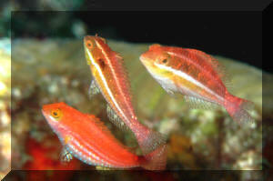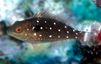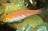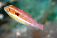 body, red unpaired fins. Terminal phase with red band below eye, black and