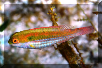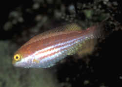 yellow anal and ventral fins; red and yellow eyes. Terminal phase with green