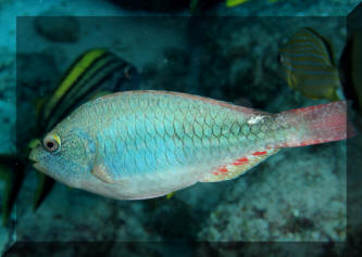 Greenblotch Parrotfish. To four inches in length. Tropical West