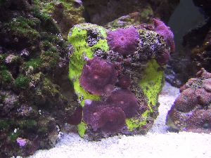 be bright green polyps, and also a colony of peach colored polyps,