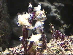 Creature from the Black Aquarium... 2/21/03 Hi Phil,<Hey Jim!> I just got a better pic for you on the invert I was trying to ID. Thanks Jim <Well Jim, even with the pic we were a little stumped. My friend/fellow WWM Crew member Anthony contacted me about this creature. He wrote this: "The creature you were asking about is a very common sponge of the genus Sycon (commonly referred to as a Syconoid sponge). They are prolific harmless filter feeders that flourish in tanks with high nutrients. People often describe them as "puffs" or "pillowy". They have a dingy off white color." So this is harmless and should go away after nutrient levels drop. Use a protein skimmer and weekly water changes to help control nutrients. Hope this helps! Phil/Anthony> Syconoid sponges of the genus Sycon - 2/24/03 Just e-mailing to thank Phil & Anthony on the ID of the invert in question. After reading the email I checked out the sponge FAQ and saw the description that other hobbyists had given and fits the creatures I have in my reef tank. <glad for the ID. It is a common and innocuous creature, rest assured> And yes the air intake into my skimmer had clogged and was giving little skimmate and yes I was adding a little too much "food " additive for my ailing Lemnalia. <no worries... predictable and easily remedied to be sure> One hobbyist described it the best .. " like the end of a Q-tip". By the way . Would these sponges be a good source for pygmy angels? <not significant... but no harm either. Its the standard angels (not dwarf) that favor sponge in the diet> Thanks again for your help.. truly appreciated. Jim/Long Island <our pleasure. Do be sure to stop in and say Hi at the BAS and Long Island aquarium club meetings Bob and I will be giving in May (9th and 11th respectively). Best regards, Anthony> http://www.wetwebmedia.com/upcoming.htm Soaking Up Information On Sponges! Dear Bob, I am hoping that you have seen something like this and can tell me if it is harmful or not. <Scott F. here tonight> On the underside of some of my live rock there is a whitish grey flat smooth growth. In one area it is 5 inches in diameter. My reef is about 4 yrs. old and I started seeing this several years ago, but didn't think anything of it. It appeared harmless and I didn't know much about what was normal and what wasn't. Most of my knowledge since has come from your book and talking with other reefers. This growth seems to be spreading to different areas of the reef. Do you have any idea what it is or what I should do about it? <Hard to be certain without a picture, but it sounds to me like it may be some form of sponge or other cryptic organism. I don't think that you should be concerned about the animal...It's all part of the wonderful diversity that arises from healthy live rock in an established system...I'd enjoy it! You might want to get a copy of Steve Tyree's book "The Porifera (Living Sponges)", which will provide a lot of information about these interesting animals> Thank you for taking the time to educate those of us who have a lot to learn. Your knowledge and education is invaluable to us. Phyllis <Glad that you find the site so helpful! We have as much fun bringing it to you as I hope you have visiting it! Good luck! regards, Scott F> Cotton ball looking things in my tank Follow-up 5/31/03 I have a 40 gal salt water setup and in the past month I've noticed little cotton ball looking things with small tentacles growing on my rock and some of my corals I have 2 bigger ones 1 in round growing under a polyp rock should I be concerned<They could be a number of things my guess would be sponges but couldn't say for sure without a picture. There's probably a picture on the WetWebMedia.com site. Cody> <<Anthony Calfo with the follow-up. Do a Google search of our website and beyond for Sycon or Syconoid sponges. IN our FAQs there are a couple of pics of a small Sycon species that is quite common... dingy white and pillowy. Do consider. Best regards, Anthony>> Brown sponge?? Hi, Bob Hope you are doing well, your site has been invaluable to me over the past three years of reefkeeping. I just have a quick question. I have a dark brown substance (almost diatom color) growing on one of my live rocks, under and around a Ricordea, At first I thought that it was some time of algae, but I let it alone and as it has grown, it now appears to be some type of encrusting sponge, with water in/out openings. What are your thoughts on what this is (i.e. have you ever seen sponge this color?) <Yes... in fact I don't think there's a color or mix in sponges that I haven't seen...> and should I let it grow or scrub it off? <I'd leave it as is... very likely much more beneficial than detrimental> it doesn't appear to be bothering the Ricordea at all. I know you guys are busy and I appreciate all the hard work you do saving our inhabitants from our otherwise bad/fatal mistakes. Thank You for your time, Thom Stephens <Thank you for writing. Bob Fenner> Identifying Unknown Hey Bob, <Hi there> I'm a big fan of your site!! I have a 20g reef tank that purrs like a kitten, but every now and then things begin to appear in my tank. <I'd leave out the "but"... "new things" will pop out apparently from well set-up, maintained systems> Usually the new growths or inhabitants are exactly what is expected of a reef system, but recently I have a stumper. Can you please take a look at the attached pic and see if you can take a shot? No takers yet! <The purple bit behind the gorgeous encrusting red algae? A sponge (Poriferan) colony of some sort... the larger osculae (mouths) are for incurrent water. Bob Fenner> Thanx, Dr Jon Sherman Red or Orange Ball Sponge? Hi Bob, This past weekend I added a sponge to my reef. The sales lady told me verbally that it was an orange ball sponge, but on the list she wrote up for me (to keep what I have straight I have to have it written down) she wrote down red ball sponge. I have read your information on the site, but it does