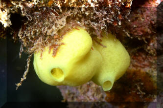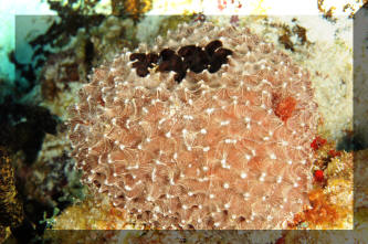 Sponge. Large mouths with raised margins... to about 4 inch colonies