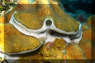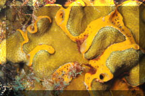 about a few species of stony corals, actually protecting them from bio-erosion by other/boring sponge species. Bahamas images. |