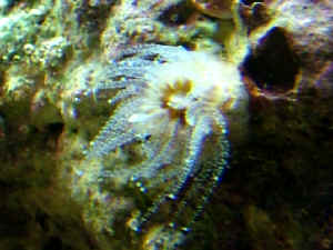 Trying to ID something... Robert, First I wanted to extend my thanks to your friend who stood in your place while you were on a diving trip a few months ago, and I love his straight forward advice, and he gave good advice on my zebra lion. <hmmm... that would have been Steve, Jason or myself, Anthony. You are quite welcome at any rate> I bought some live rock from petwarehouse.com, Fiji rock in specific which I ended up recurring, and last week I noticed something that I think is a coral, but am not sure. The pics I have of it are too blurry. What I have looks like either Pocillopora verrucosa or Pocillopora damicornis cropping up, <P damicornis is very common...what a pleasure for you if it is!> but I am not sure. Whatever it is, it is encrusting, it has irregular shaped lobes or polyps, a clear membrane over it, and quite aggressive in spreading. It spreads over live rock where there is little on it as opposed to where coralline has grown over old skeleton. <hmmm... the Pocilloporids would not encrust very far without raising branches. Perhaps another reef invertebrate it is> I have noticed various colonies of this stuff in cream, one in a pinkish brown, and one I am not sure if it is pink coralline or the same thing in pink. The largest of the colonies is about half the size of my palm, and about 1/4 inch thick or better. It has some pores like verrucosa but it also resembles damicornis with the membrane that is over it, so I am not 100% certain. As of thanksgiving or so, this large colony was not there, then all of the sudden, BAM! I thought it was some man eating fungus from area 51 or something; I had never seen anything like it. It does not move, it has no shell, it is not a sponge for sure. It is not porous like a sponge, and the smaller colonies have some sort of structure to it where you can see through the membrane clear enough. The polyp structures or lobe looking things are in no specific pattern, all variant in size, and ranging from a few millimeters to 10-15 mm. How do I know for sure that it is a coral, and if it is, how do I know what the likelihood is of it being a pocilloporid or not? I also have some other things that look like another variety of a pocilloporid. <do forward a picture when you can... I suspect I will be able to ID it to your satisfaction. Kindly, Anthony Calfo> Joe Szweda Marine livestock (coral identifications) hi bob... hope all is well... <Yes my friend, thank you> I'm a retailer in Florida of marine livestock...I'm familiar with a lot of the fishes and corals out there, but on occasion, I do come across 'new' items. Just wondering if there is a good reference book illustrating the many acroporas, etc... Thank you for your assistance. kind regards, Hoang Bui <Ah, a timely question (am in the middle of finishing up the slides from last month in Sulawesi... the hardest for last, the stony corals)... THE best overall source for scleractinian ID is Veron's three volume "Corals of the World". I would get/use a copy of these (and if you can afford them a set for your store, customer perusal. I do use other "popular" references to get slide identifications down to family, most genera level (like Eric Borneman's work). Bob Fenner> Coral ID Hi, the live rock in question is cured Fiji rock. Both corals have some sort of stony base and the polyps are only expanded (or inflated) in the daytime. They seem to engulf pieces of frozen brine shrimp and detract quickly to the touch. <it does not help much my friend.. there are thousands of possibilities. At best it sounds like a large polyped stony coral bud. Do know too that brine shrimp is a woefully hollow and inadequate food for most any animal. Its almost tragic that its still sold and popular! Do compare the single digit protein of brine shrimp to the 69% protein of PE mysis shrimp instead!!! So many better frozen foods (Gammarus, minced krill, Pacifica plankton)> I hope this helps as I cannot take a picture. <do reference Eric Borneman's book Aquarium Corals for further help if possible... else continue to browse online for a photo ID. Best regards, Anthony> Coral ID Hi, I hope you can help me with a couple of unidentified corals. After purchasing some pieces of live rock and placing them in my tank I have discovered two strange looking corals. One 3cm diameter 'bunch' of purple bubble like things with one tiny curl on each bubble pointing toward the centre. And also what seems to be an anemone type (definitely not aiptasia) 1cm circular orange base with tiny white tipped transparent tentacles (polyps?) which are about 2/3mm long poking out. Is it possible to have anemone hitchhikers on live rock?. <easily> I have only 1 blue actinic bulb and 1 marine white fluorescent bulb. Will this be sufficient for these creatures for the time being (gathering funds for additional bulbs. Any help is greatly appreciated. <we can't comment on the lighting before we know what the animals are and what their respective needs are. To help you ID these creatures we need some more information. A picture would be best (close-up). If not... we need to know the type of rock (where collected) and some more details about the creatures. Do either appear to have a stony base? Do they expand or contract at night? etc. Do work on providing a picture, my friend... it will be easiest and most helpful. Kindly, Anthony> Coral I.D. (actually a red algae) Hi The Crew, <Howdy> Hope you guys enjoyed the hot summer. I have this thing growing out on one of my live rocks about two months ago, now it grew to about 4" around. It feel soft at touch, and the appearance like Japanese maple tree. Would like you guys to identify it for me. As always appreciate your expertise. <It's a species of Red Algae. Please see here: http://www.wetwebmedia.com/redalgae.htm> PS: Just thought you might interest to see this picture: One of my tomato clown in a purple tipped Condylactis anemone. SWEEEEET. <Very nice as well. Bob Fenner> Wayne Algae/Coral I.D. Hi The Crew,
