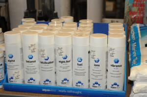 As the saying goes, "It's the water" and a whole lot more. Seawater is a complex mix of living (microscopic and our livestock) and non-living (water, salts, organic and inorganic "trace" materials...) matter. Some substances are remarkably constant in natural seawater, yielding a consistent composition worldwide. The same cannot be said for small, captive systems; some aspects of their make-up change slowly (pH, alkalinity), others are more dynamic (redox). What's more many physical, biological and chemical constituents change in concert/opposed to one another. One famous and important example of this is the relationship between ammonia and pH. The toxicity of this aquatic waste product is elevated orders of magnitude by higher pH. "Nature abhors a vacuum" certainly applies to marine water. It is filled with detailed interactions. The oceans are vast, dynamic, mixed continuously and constant in composition. Our system's cannot, do not, and don't have to do more than approximate what natural seawater is. Synthetic mixes can provide all aspects of a supportive medium; most systems without the addition of any further supplementation. Adjuncts: To add or not to add, that's a question There is continuing speculation on the roles of inorganic ions of a number of elements and compounds play in closed systems. Some considered necessary for life are called essential trace materials; trace because they are found in such slight concentrations. Two choices exist for sourcing the elusive medium, seawater; natural and synthetic. The basic pro's and con's of both have been covered in D) 1). Real saltwater is used by very few aquarists due to it's many serious drawbacks; costs for hauling, treating; lack of life-support over a relatively short interval; dangers of introducing undesireable pests and pollution... There are few exceptions, like the Bishop Aquarium in Hawaii, and other coastal large-volume open-system users, where natural water is a viable alternative. For small, closed systems, artificial seawater is highly preferred; it's convenient, cost-effective, and supports all forms of marine life. About Artificial Seawater and Supplements: Some of the original questions facing investigators/formulators of synthetic seawater was what are the roles of such materials in captive systems? How necessary is trying to match the sea's make-up of the same? Do they build-up (with addition of food, other sources), decrease in concentration (due to bio-accumulation, selective up-take, precipitation...) over time? The first synthetic formulations met with little success biologically. These mixes were chemists initial attempts at exact duplication of nature, and they didn't work. Starting in the 1950's in Germany, moderately successful mixes focused on imitating only the oceans major constituents; adding small amounts of "trace" materials only as they were apparently needed. In the U.S. (1961, 62) W.E. Kelley and Richard Segedi at the Cleveland Aquarium instrumentally improved on the German mix by lowering cost and further defining the concentration of certain trace elements. This is today the basic formulation used by all major/large distribution salt mixes. Ocean seawater has all naturally occurring elements present in it. Good synthetics list @ seventy trace elements in various formats in their make-up; some increasing number of which have been deemed "essential" for life. It is a safe bet that more material will be considered necessary as time goes by. Happily, the process of making synthetics almost always involves utilizing "dehydrated" natural water that preserves some trace element material. Additional, known essential trace substances are intentionally added to the rough raw mix. Viable synthetic sea salts do not, should not attempt to absolutely replicate seawater. The natural marine environment is a far more complex and uncontrollable medium than our closed systems can manage. Artificial Media, Components, PR & You: Some companies have gone to extraordinary lengths to produce pseudo-scientific (small, opened samples from the payee's source, no double-blind labeling/testing...) "reports" declaring their products superiority over all others. Don't be fooled by such claims of ocean-like water quality. Whether a brand has two components, wet or dry, or even a slurry, does not make any appreciable difference in it's suitability as an artificial medium. A good mix may contain added doses of trace elements, vitamins, calcium, even hormones; or not. It is my opinion and the bulk of the non-biased scientific literature's that unless you're engaging a crowded, "reef" environment with boosted light and filtration or intensive closed-system aquaculture facility, the addition of supplemental "trace" materials is not warranted. For differing opinions (there are many) you are referred to any/all of the "reef" books and column writers in the pet-fish literature. Sources of Trace Materials: First from the express formulation of the mix, and intentional and unintentional contamination of their constituents. To a minor, but possibly substantial account, from the source water (tap) used to make up the synthetic. Important minerals such as calcium and silica are frequently available from substrate, coral, rock and shell decor. Calcium is often super saturated (400-500 plus ppm) in an adequately set-up and maintained system. Adding more will not, does not increase it's concentration. More about this element in the next section. Vitamins are present in sufficient quantities and qualities in properly prepared and stored foods. Hormones are produced, secreted and excreted by the life in the system itself. They do not need to be added externally. Sources of Loss of Trace Materials: There are records in the literature that detail the loss of trace elements in the absence of purposeful livestock. Interactions with glass, plastic aquarium walls, substrates, and more are responsible for iron, calcium, strontium... leaving solution.