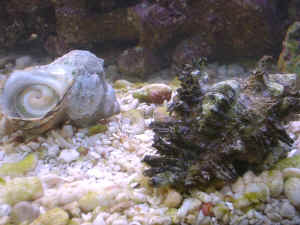 Snacking On Snails! Thanks for all of your help, Scott F. <My pleasure!> I am curious, what other causes could be causing the bleaching and recession for that coral? <So many possibilities, and only theories as to the actual causes. Most bleaching events are thought to be a response to some environmental stress...Really hard to be more specific than that> I wish I could tell you more about the coral, as in name and type. I do know it is a hard polyp coral and it is a kind of fluorescent green color. I hope that makes sense. <Hmm...that narrows it down to about 300 species or so...LOL! Probably need a photo to get a real ID on it> As for the snail problem, I have read many things are on this site that say a 6 line wrasse is good. When I mentioned this to my friend, his first response was to call his fish shop first thing in the morning and ask them to either set aside one for him or order one for him. Can you tell me a bit more about their temperament as well as if this is a good idea for the snail problem? <In my experience, the Sixline wrasse is a gentle and active fish, that seems to keep itself busy poking and prodding about in the rock structure. It is a known predator of some of the small Pyramidellid snails that attack Tridacna clams, and possibly, some corals. Other types of wrasses that may munch on various snails may include the Halichoeres wrasses, such as the "Yellow Coris" wrasse. Other people employ species of Hawkfishes, which definitely eat snails, but also make short work of desirable hermit crabs, and even other small fishes> And finally, after sending off the original email, I kept searching the site and I found so much great information. You have quite the amazing and wonderful website here. <Glad that you enjoy it!> Makes me think I could handle a tank of my own (although I want to settle down a little more first, don't want to be moving a reef tank around the country on a regular basis) knowing that if I need help, its all right here and I can ask you all, too. Great job here, though! Keep up the good work. <You can do it! Just learn the simple "rules" of reef keeping, employ a healthy dose of patience, and a willingness to adjust your techniques as you go...> Thanks again, Lori <Any time, Lori! Regards, Scott F> "Snail" Spawn ID 3/21/03 can anyone explain this to me? <appears to be an egg mass from some kind of snail-like Gastropod. Numerous possibilities... almost certainly harmless too (ending up as safe or merely eaten). Best regards, Anthony> Nasty Snail Tale Hi, <Hi there, Scott F. here today!> I am writing on behalf of a friend who I don't think realizes just how frustrated and irritated he is. He has two tanks - both very beautiful and very well kept...except for those little, tiny, apparently irritating snails. These tanks are both marine one of which is primarily for more aggressive fish that cannot realistically be kept with coral that he would like to keep alive. The other is a smaller tank (for the time being) used for the coral. This tank has two coral beauties and many different types of coral including a brain coral and mushrooms among others. He recently acquired a couple of new pieces of coral and tonight while looking at it as I always do, I noticed a couple of snails. One was a tube snail (pointed end at one end, snail body at the other) and the other was a spiral-shelled snail. He then pointed out one of the pieces of coral that seems to be undergoing bleaching as we speak. He has no doubt these snails are the root of the problem, but when he has asked his fish store how to remedy the situation, they recommended a fish that apparently can either eliminate the snails or eliminate the coral. <Well, the snails may not be causing "bleaching", as this is an environmental response. However, some species of snails can be responsible for munching on polyps. There are a couple of ways to prevent damage caused by the snails. First, you should quarantine newly-arrived corals for a period of time, expressly for the purpose of letting these pests "drop off" from the corals. You can place them on a egg crate platform, and add some "meaty" food, such as krill, Mysis, etc. underneath. This will help "bait" the snails and other pests off of the coral, where they can easily be removed. The other thing that you could do would be to add certain fishes, such as Hawkfish or some wrasses, to the tank, which enjoy preying on snails.> He does not like this iffy-ness and so is plucking these snails as he sees them. However, I am most concerned as these tanks are a source of great joy except this snail issue seems to really frustrate him. Please tell me there is a remedy for this and please then tell me what it is. Of course, these snails were introduced via live rock he purchased from that same fish store. He figures that store sees enough business that those live rocks are turned over before the store sees the snail problem. I have now spent the last two hours trying to find a solution and while solutions abound for the freshwater problem, I have found nothing that says what to do for marine. <Well, as mentioned above, I'd study those two ideas...Should do the trick> Ok, done babbling now. Please help. As a side note, he has mentioned that friends he shares this interest with have similar problems in their tanks. Of course, they are purchasing their coral, fish, and live rocks from the same place. Just to add more, case I haven't said enough, I know pH, nitrates, phosphates, silicates, and salinity are where they should be. He, as well as his friends, vehemently maintain their tanks within appropriate ranges and we are all Oceanographers and Marine Biologists with a tad bit of awareness of what marine environments should be like. But no matter how many Marine Biologists we ask, the answer is unknown as usually, propagation is desired, not removal. Or so we are finding when the question is asked. <Well, some types of snails, such as Strombus, Trochus. Astrea, Turbo, etc. 