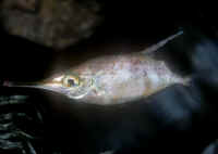 Macroramphosus scolopax Linnaeus 1758, Longspine Snipefish. To 20 cm. Eastern and Western Atlantic, SW Indian Ocean, Western Pacific, mainly in temperate zones. Young feed on pelagic crustaceans (copepods) near surface, adults on invertebrates near the bottom. Aquarium photo.