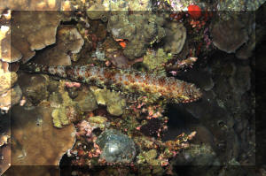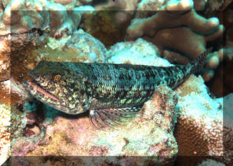 the Reef Lizardfish. Sea of Cortez to Peru, on rubble bottoms. To