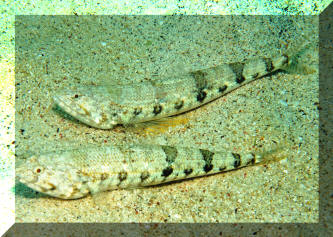 Lizardfish. To 23 cm.. Indo-Pacific. Typically found on the sand. Kona 2014 |