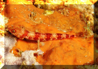 on "nose", bright red bars across body. Trop. W. Atl. This one in Roatan