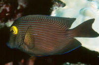 The genus Ctenochaetus ("ten-oh-key-tus") The members of this genus are attractively shaped, colorfully marked, and interesting behaviorally... why then doesn't the industry import them more often? Are they uncommon in the wild? Are they too hard to catch? The honest answers; Ctenochaetus aren't rare or difficult to herd into barrier nets; but hobbyists have not had "much luck" historically in keeping these tang species alive. The principal reasons for this are damage in capture and handling, and starvation once the hobbyists get them. Given the selection of initially healthy specimens and provision of algae and detritus (an older, established, not-too-clean) system, especially one with live rock, these fishes are all 1's. Some pertinent notes regarding the four species of Ctenochaetus occasionally offered in the trade: