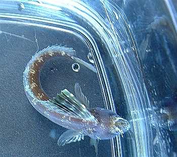 4/7/10 GSPs & Butterfly Goby (Neovespicula depressifrons) 4/24/08 <Hi again, Scott> Thanks for the reply. I think I had an overprotective mother type situation, because the patch does in fact seem to be going away on its own. <Good news!> I am keeping two GSPs in the 30 right now but plan to upgrade to a 55 gallon when I move if I feel that the two fish will get along ok together or stay out of each others way, which ever works. Right now the smaller one is no more than 1 1/2" max and the bigger one is maybe 2", but I think smaller, I am guessing. <They really should be moved into larger quarters soon. If they have been paired together as juveniles, there is a pretty good chance they will get along into adulthood.> The butterfly goby is bigger than the smaller GSP but will eventually be moved into something else when the SG gets up there. I wonder if you know anything about that fish actually, I have found very little information on it, I can't even find a scientific name on it, but I guess it is sold as 'butterfly goby' in the US. What I did find listed it as brackish, which is why I got it. Anyway thanks again. <Here is what I found on the goby: http://homepage.mac.com/nmonks/aquaria/brackfaqpages/Predatory_fish/(4k)butterfly-go.html ~PP> Scott Butterfly goby with swim bladder disorder? Hi all, You guys get all my hard questions...thanks in advance for the help. I've got a butterfly goby (Vespicula depressifrons) that is acting like it has a swim bladder disorder. (I didn't think these fish even had swim bladders.) It's swimming like it's trying to keep itself from floating to the top of the tank. The fish is head standing, fins paddling madly, but it still tends to drift upwards. It is also slowly spinning like a top, but not like it has whirling disease (which is a much faster spin). The fish also looks a bit "inflated" around the belly. I'm not quite sure how long this has been going on, as I haven't seen it in a few days: it's been in the straight-Fw planted tank (which was overgrown with Val's) at the old place, and I've just moved it to a temporary tank at the new place. What I can do to help this fish? Would moving it into a brackish tank help? <This fish should be in brackish or marine.> (The reason I ask about the brackish tank: I have a molly who got pop-eye four times when I had him in a Fw tank. Each time, I'd put him in a hospital tank, add Epsom salts, and then top off the tank with old brackish water. That fixed his eye every time. Now I just keep him in brackish conditions, and he hasn't had pop-eye since.) <If the fish is new the behavior could be from a stressful transport. The inflated around the belly part indicates a disease however. medication in a quiet dark tank would be best. Furan based drugs, salt, stable temps, etc. Best of luck, Gage> Thanks, Ananda Mainly brackish gobies Hi Bob! Well, the spinning molly died a couple of days ago. She wouldn't eat, even when I tried live black worms, so I wasn't surprised. <Sorry to learn of your loss> The ghost shrimp experiment is going well. They seem to be tolerating the SGs up to 1.008 without much difficulty once they get past the initial transition period. Some of them haven't survived the transition, but in those cases, the gobies haven't complained about the extra treats. Oddly enough, the candy-striped gobies aren't interested in the shrimp, even though they are easily large enough to eat them. I had an entertaining time watching one of my so-called "butterfly gobies" trying to eat a ghost shrimp that was bigger than itself. The shrimp got away for a while, and then goby was "stalking" the shrimp. Quite amusing. I don't know what the "butterfly gobies" really are, but they definitely aren't true gobies. They look sort of like miniaturized dwarf lionfish, mottled brown and beige and about 1" long, and nothing like the marine butterfly goby, Amblygobius albimaculatus. Do you know if this fish is a sculpin, or a Scorpaenidae, or is it something else entirely? <Beige mostly? Maybe Stigmatogobius: http://www.wetwebmedia.com/brgobioids.htm> LMK if a photo would of my fish would help; I don't have a photo of them yet since it's hard to get the digital camera to focus on them (it's a bit *too* automated). <Check to see if you can "turn off" the automated (focus) feature... Bob Fenner> Thanks, Ananda Keeping BW Fish in FW 1/4/07 Hello, <Hi, Pufferpunk here> I was wondering if the Leaf Goblinfish (Neovespicula depressifrons) could adapt to a completely freshwater environment. I have read that they are found in freshwater, brackish, and even fully marine waters. Most sites have them listed as mainly brackish, can they thrive in a freshwater tank or even adapt to it? <This species is considered BW. Many BW species do swim throughout the 3 systems (FW/BW/SW). Since you will be keeping it in an enclosed system, where it cannot swim up & down the salinities as it chooses, it is best to keep it in BW. Although it will "tolerate" a life in FW, it will be happier, healthier & longer-lived (stronger immune system) in BW. ~PP> Thanks