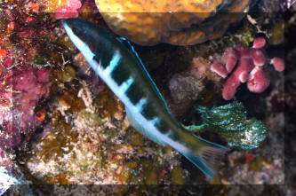 the Six-Barred Wrasse (3). Indo-Pacific, to eight inches. The