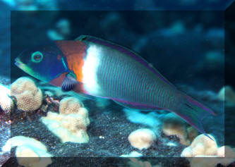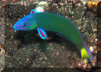 Thalassoma genivittatum Redcheek, Blueneck Wrasse. To
